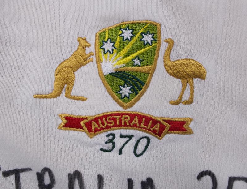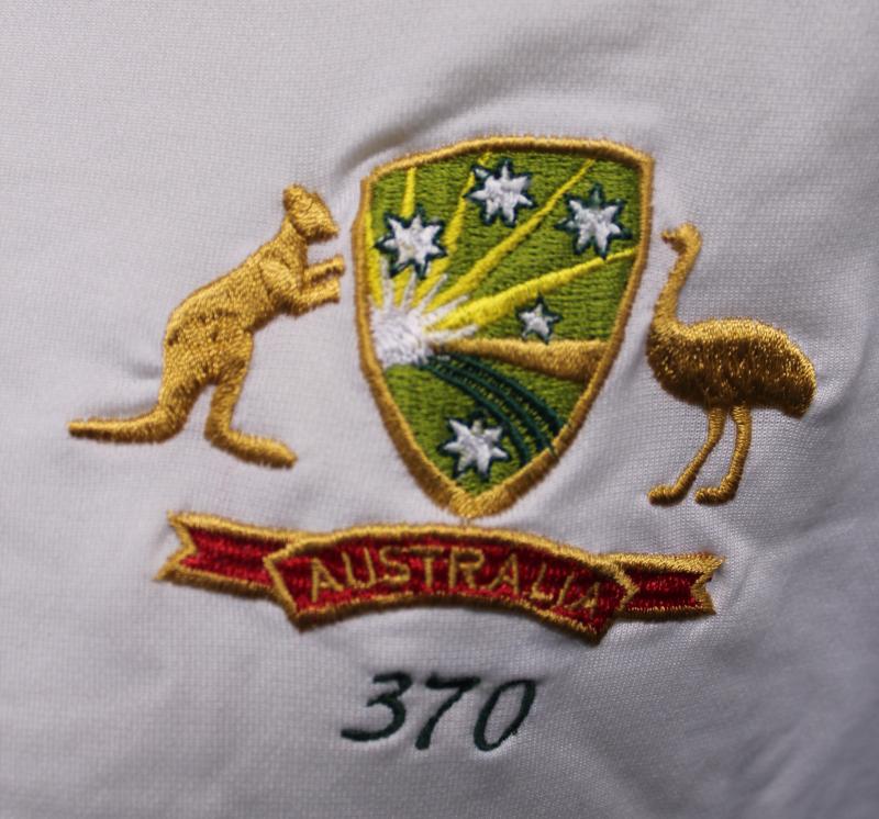 Australian Test Shirt with embroidered Australian Coat-of-Arms (with player number '370' for the first time) and Travelex & FILA