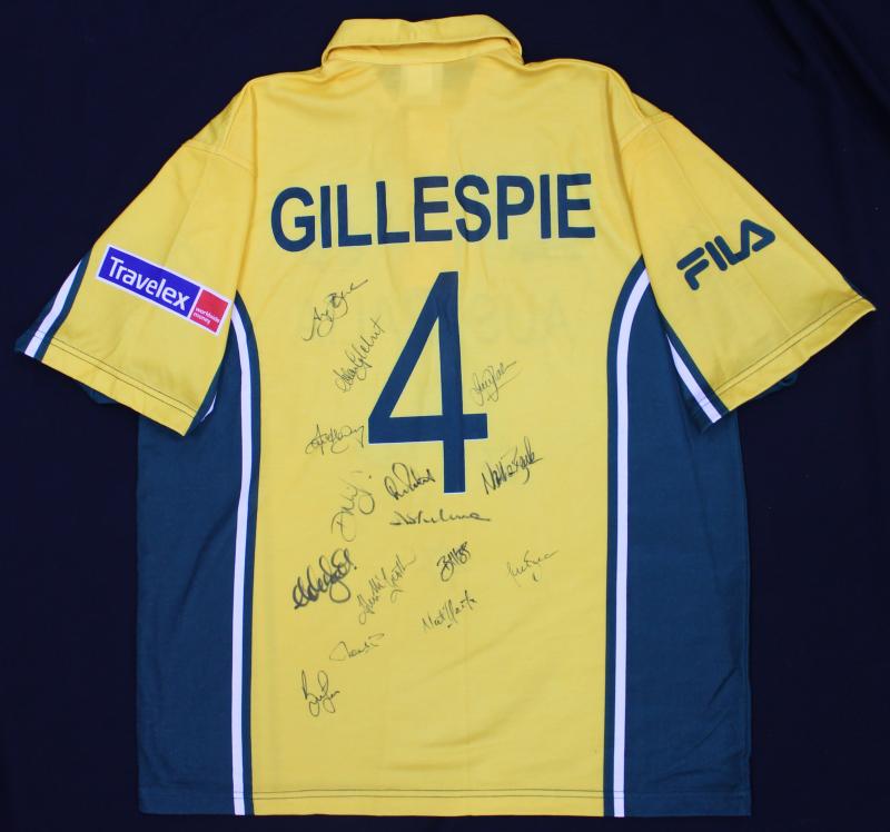 Australian ODI Shirt with 'GILLESPIE' & '4' on reverse, ACB logo & 'ICC CRICKET WORLD CUP, SOUTH AFRICA 2003' on front, with 15