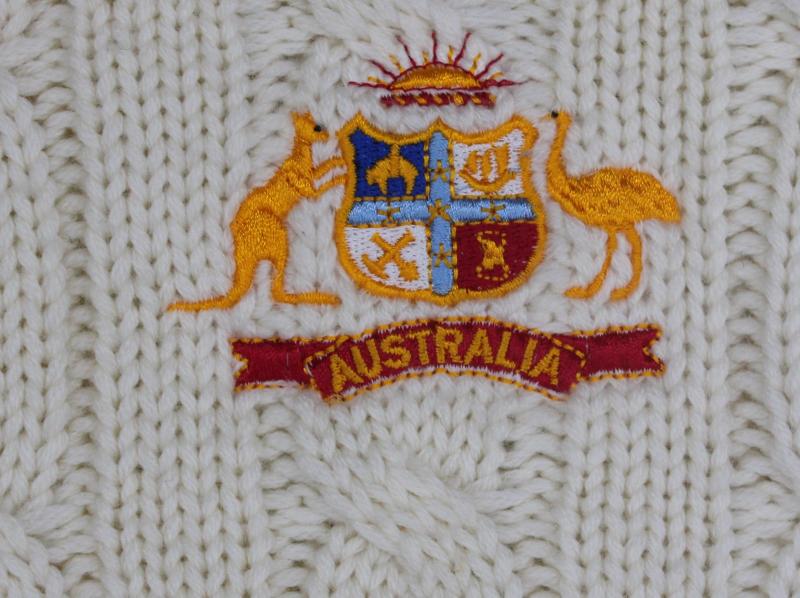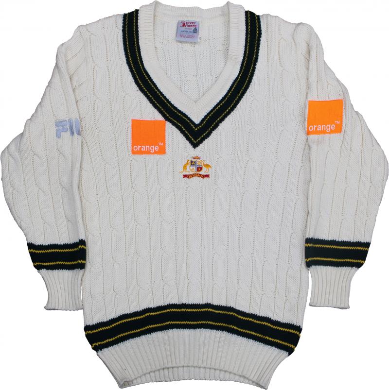 Australian Test Jumper long sleeved jumper with Australian Coat-of-Arms & Orange logo on front, with 'GILLESPIE' on tag, and