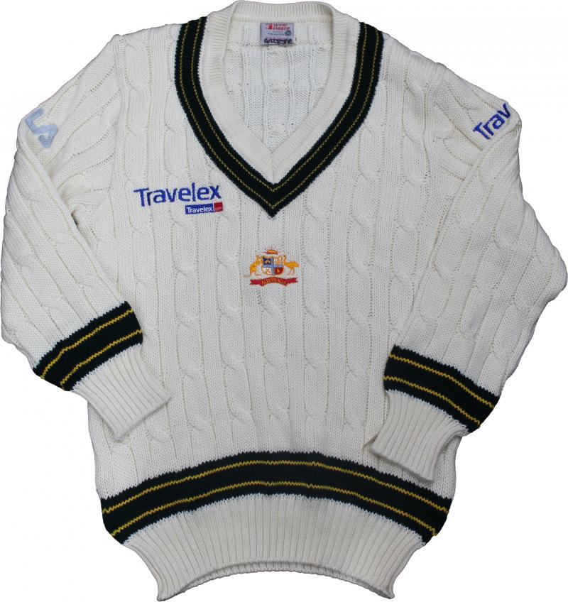 Australian Test Jumper long sleeved touring jumper with Australian Coat-of-Arms & Travelex logo on front, with 'GILLESPIE' on tag,