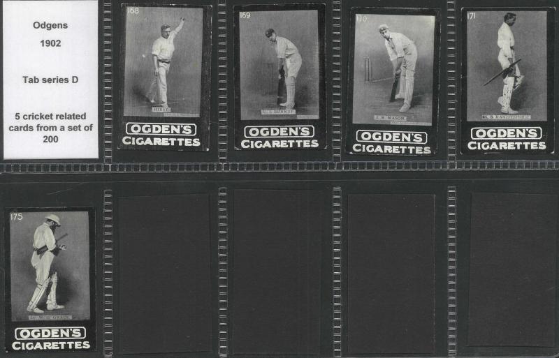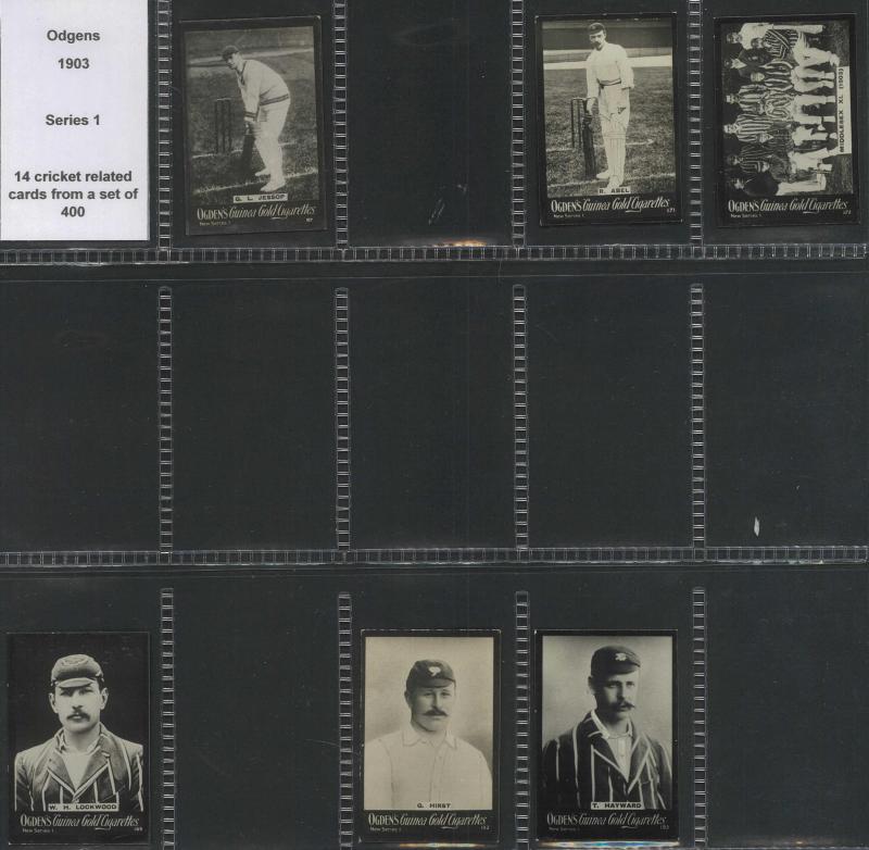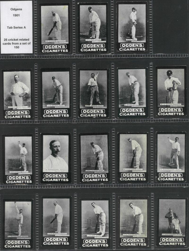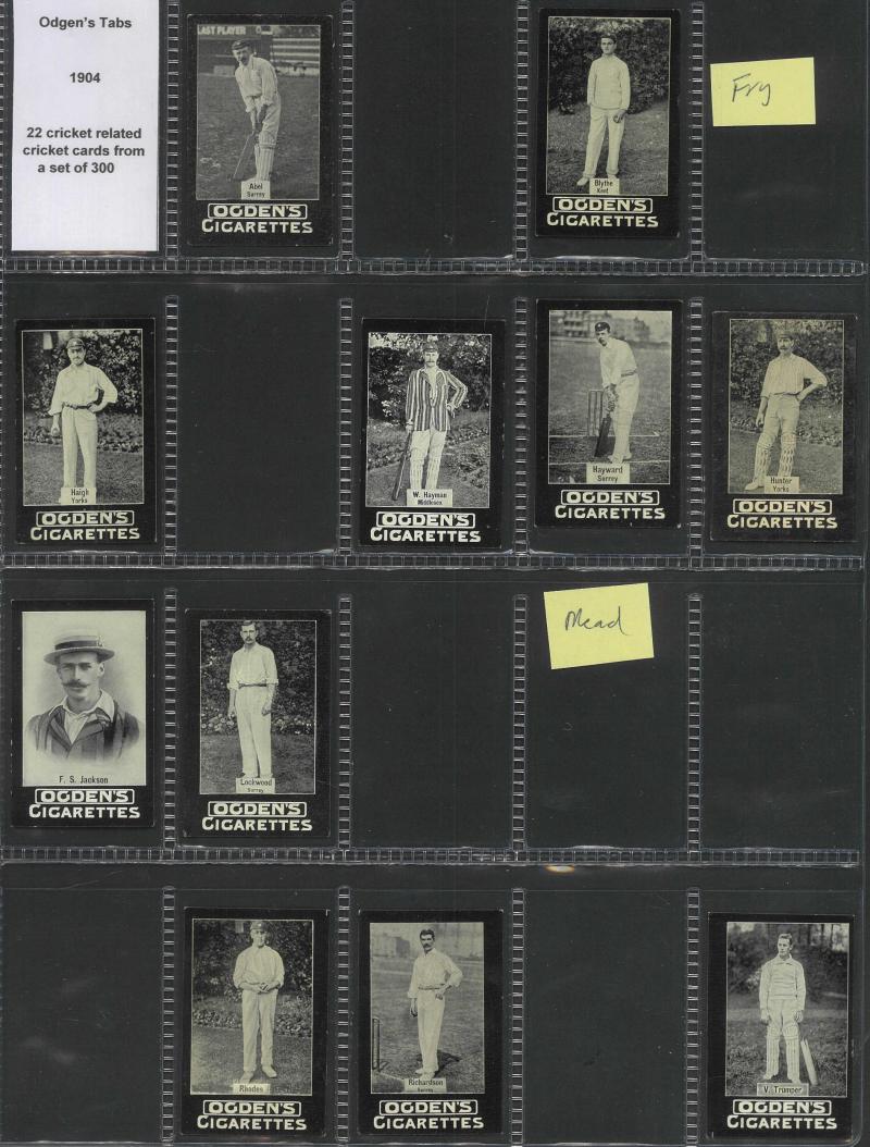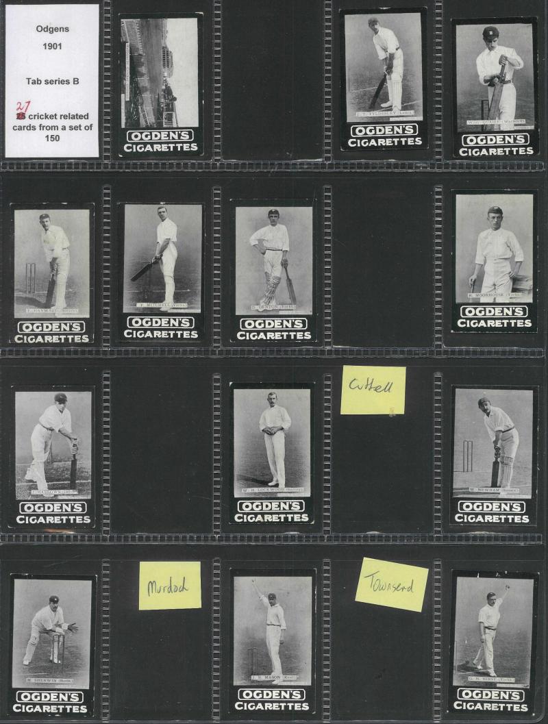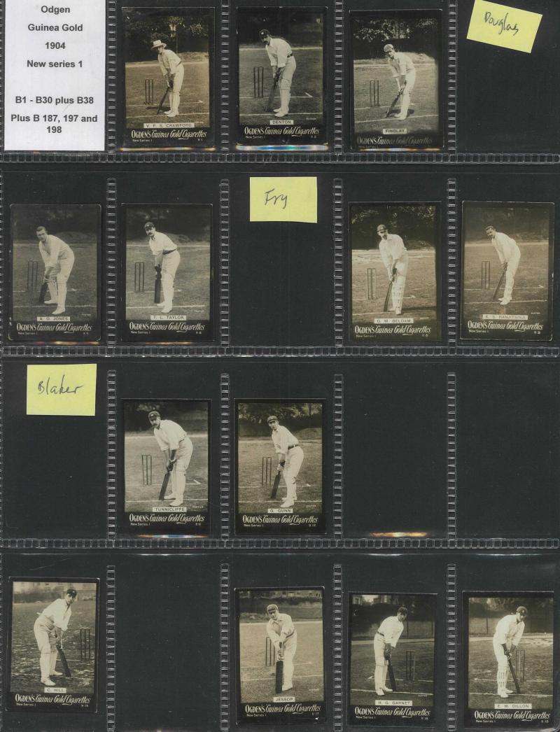 [10/11]; 1904 New Series B [26/41]; 1903 Series 1 [6/14 cricketers]; Ogdens "Tab" Issues with Series A [22/25 cricketers], Series B [20/27 cricketers], Series D [5/5 cricketers], Series E [10/15 cricketers], Series F [3/42 cricketers], 1901 'Our