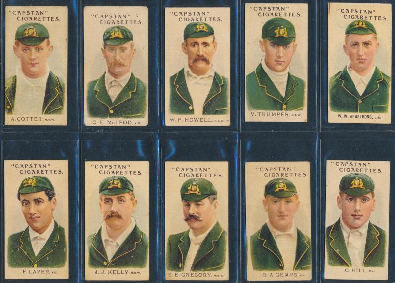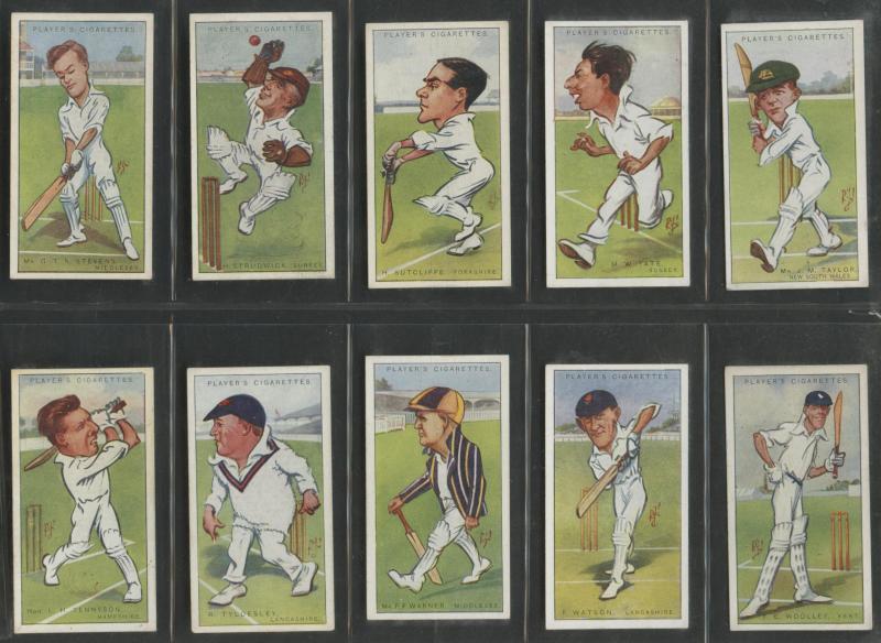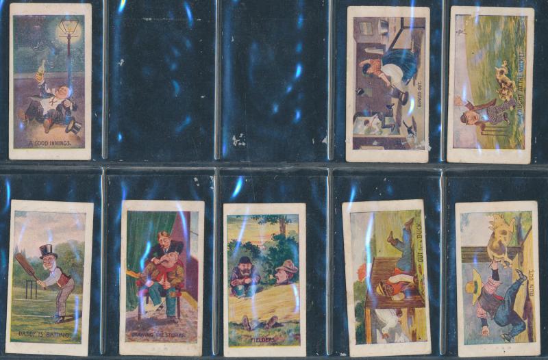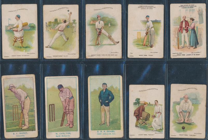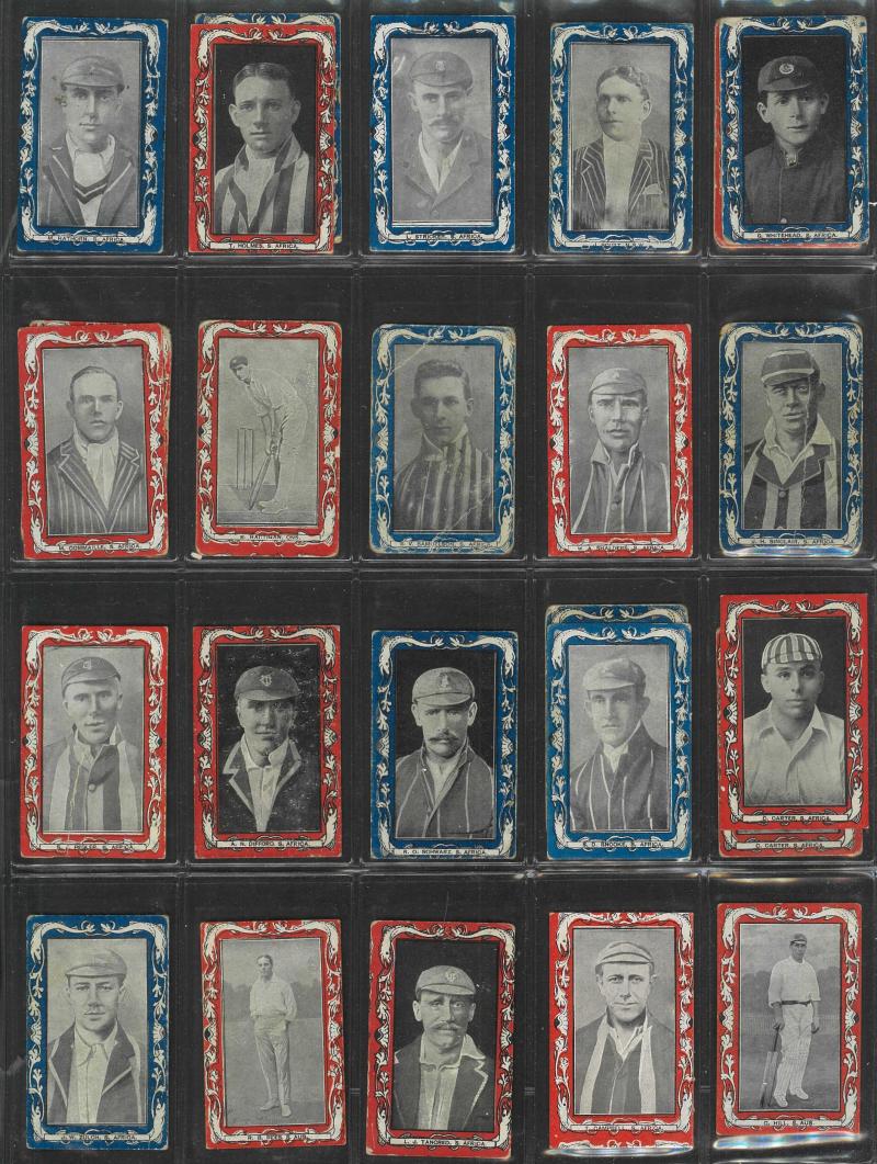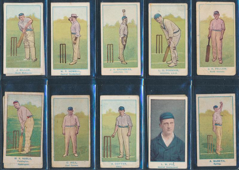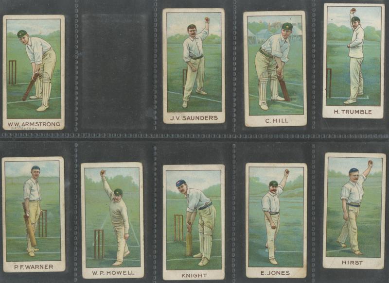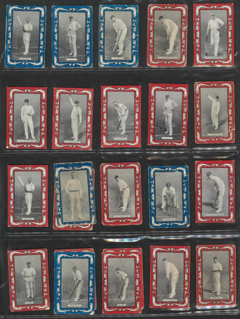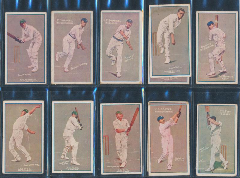 'Australian Cricket Team' [15]; 1905 'Cricket Terms' (13); 1906 'Cricketers in Action' [40], mainly Poor/Fine. Inspection will reward.