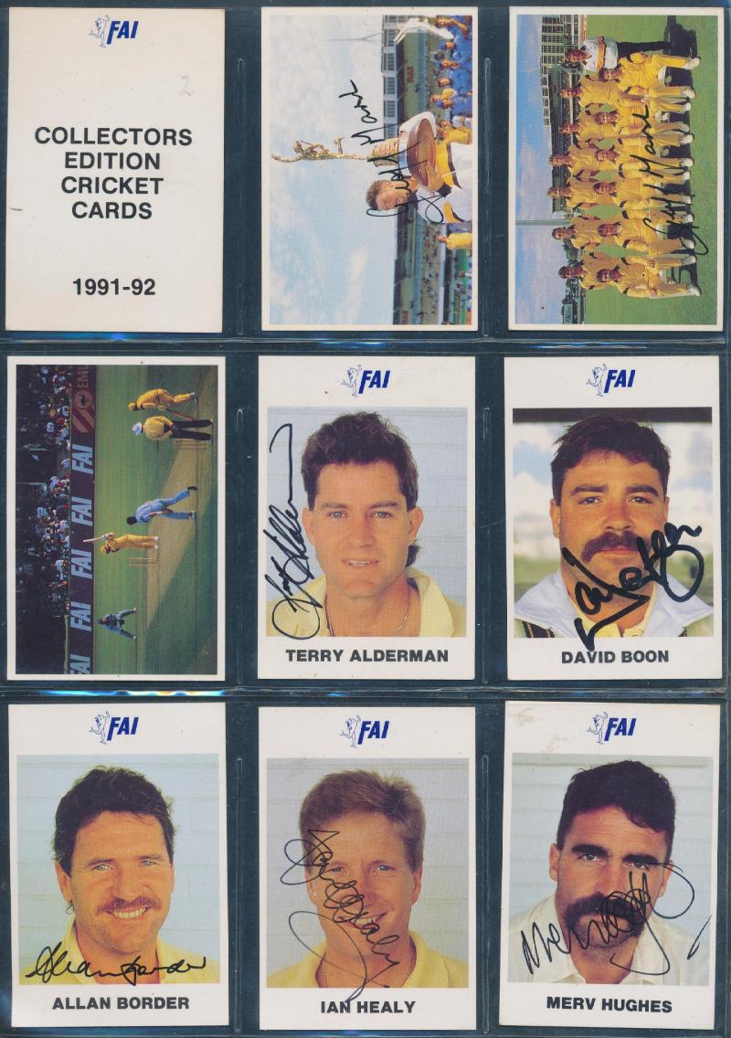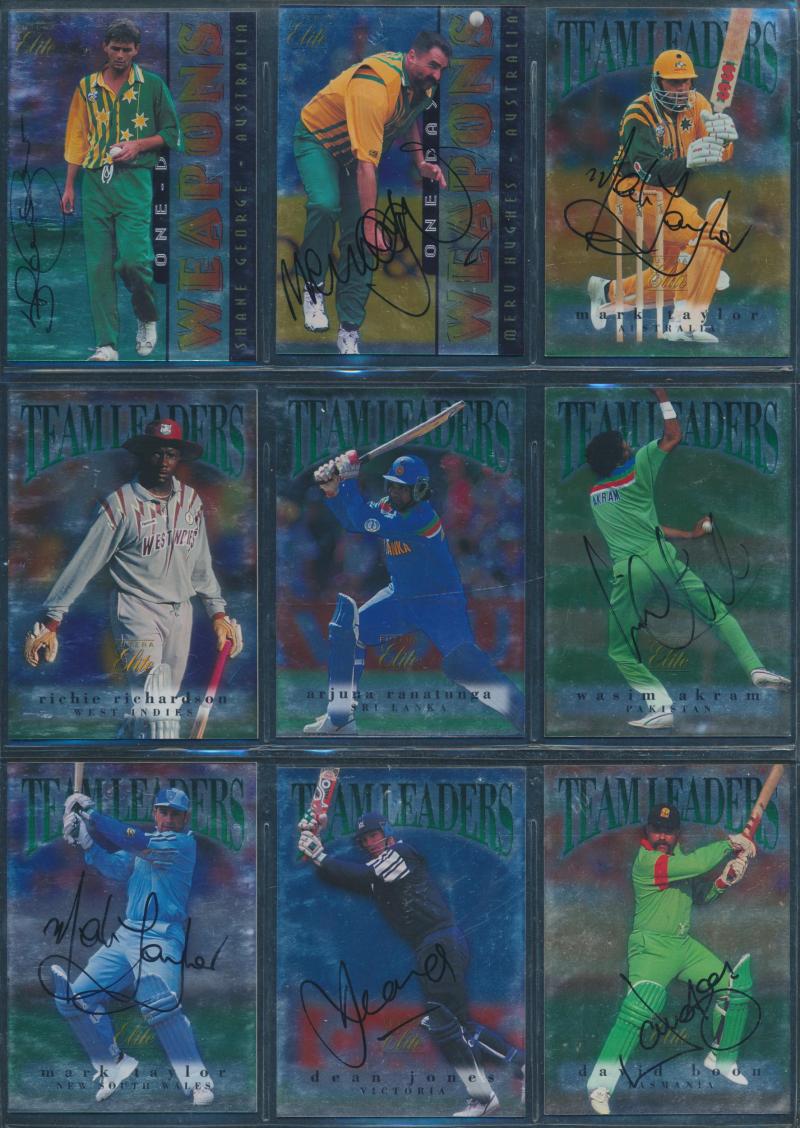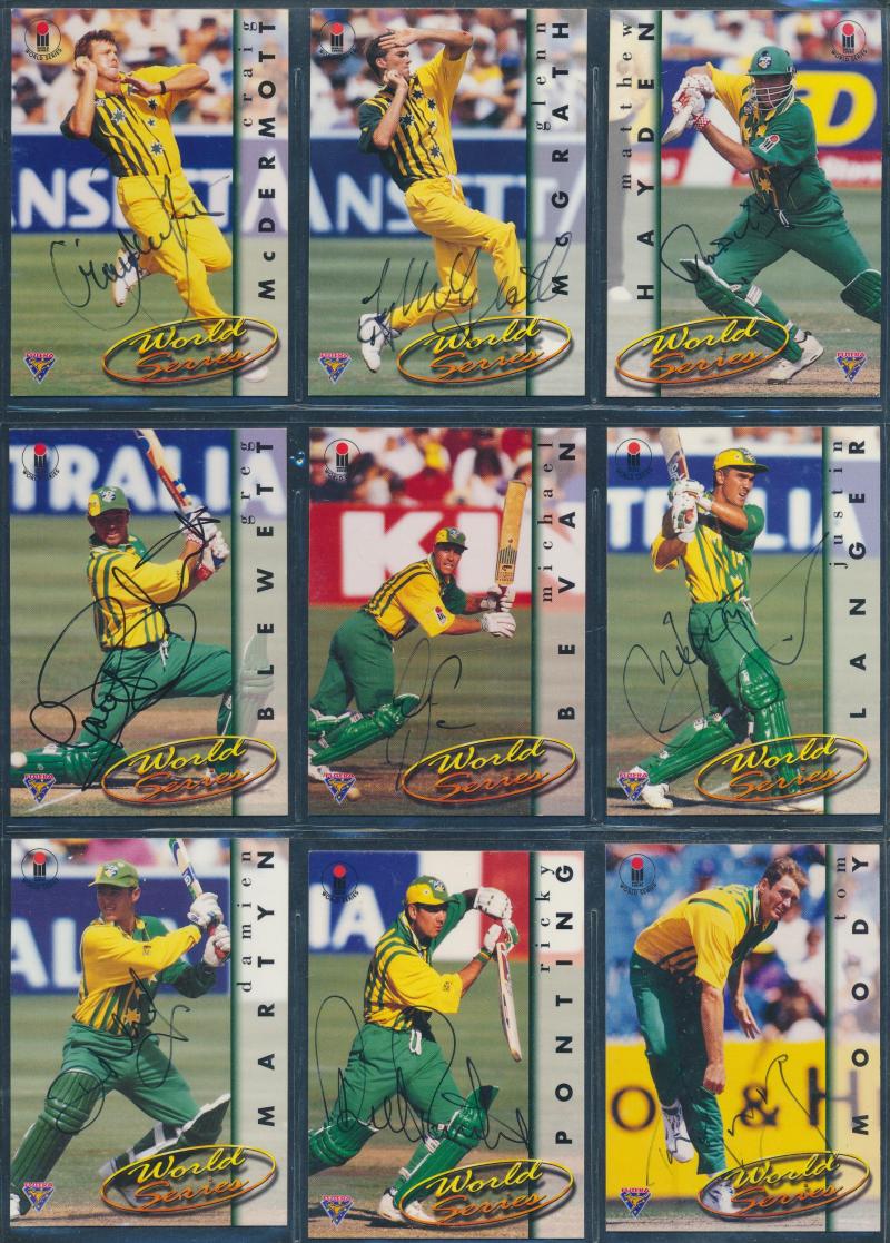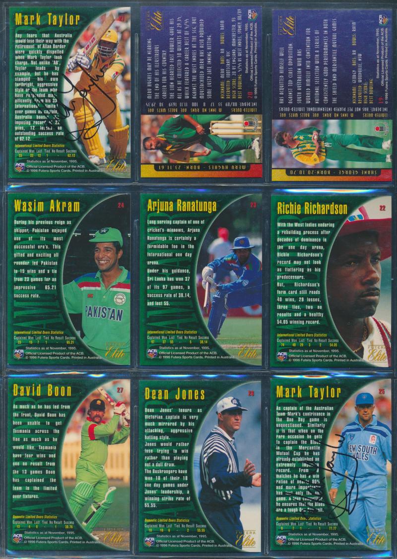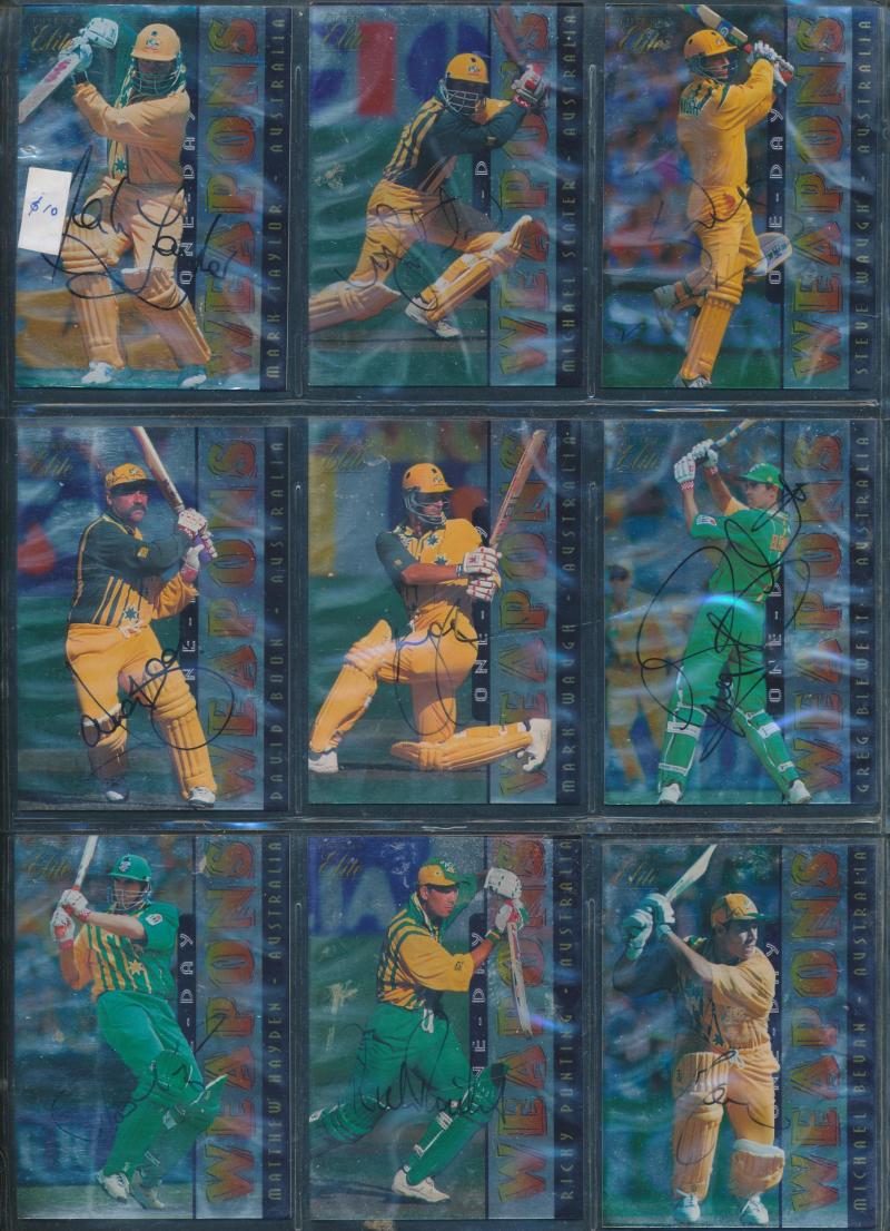 Greatest Legend - Sir Donald Bradman' & 'Allan Border - The Master'; 1994 Futera 'Allan Border Hologram' (3); 1995 Futera 'Shane Warne Hat Trick' (8); 1996 Futera '4-Up Mark Waugh Signature'; 1996 Heritage 'Sir Donald Bradman' Sample [4] &