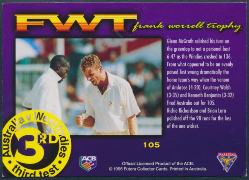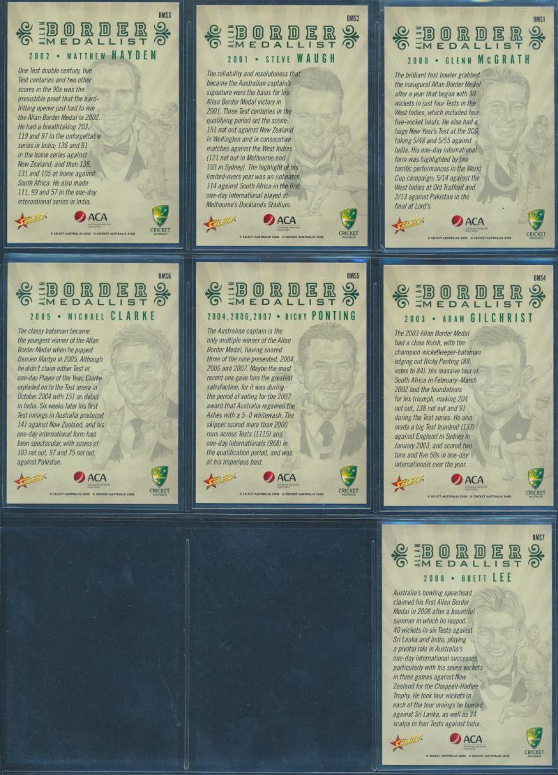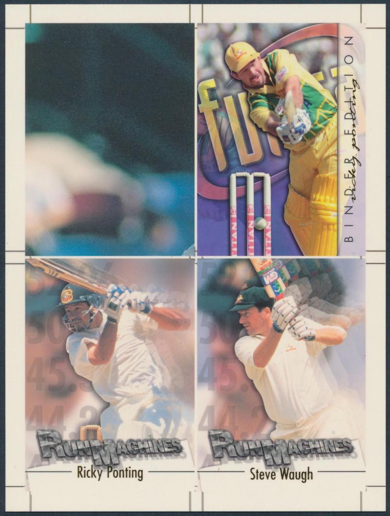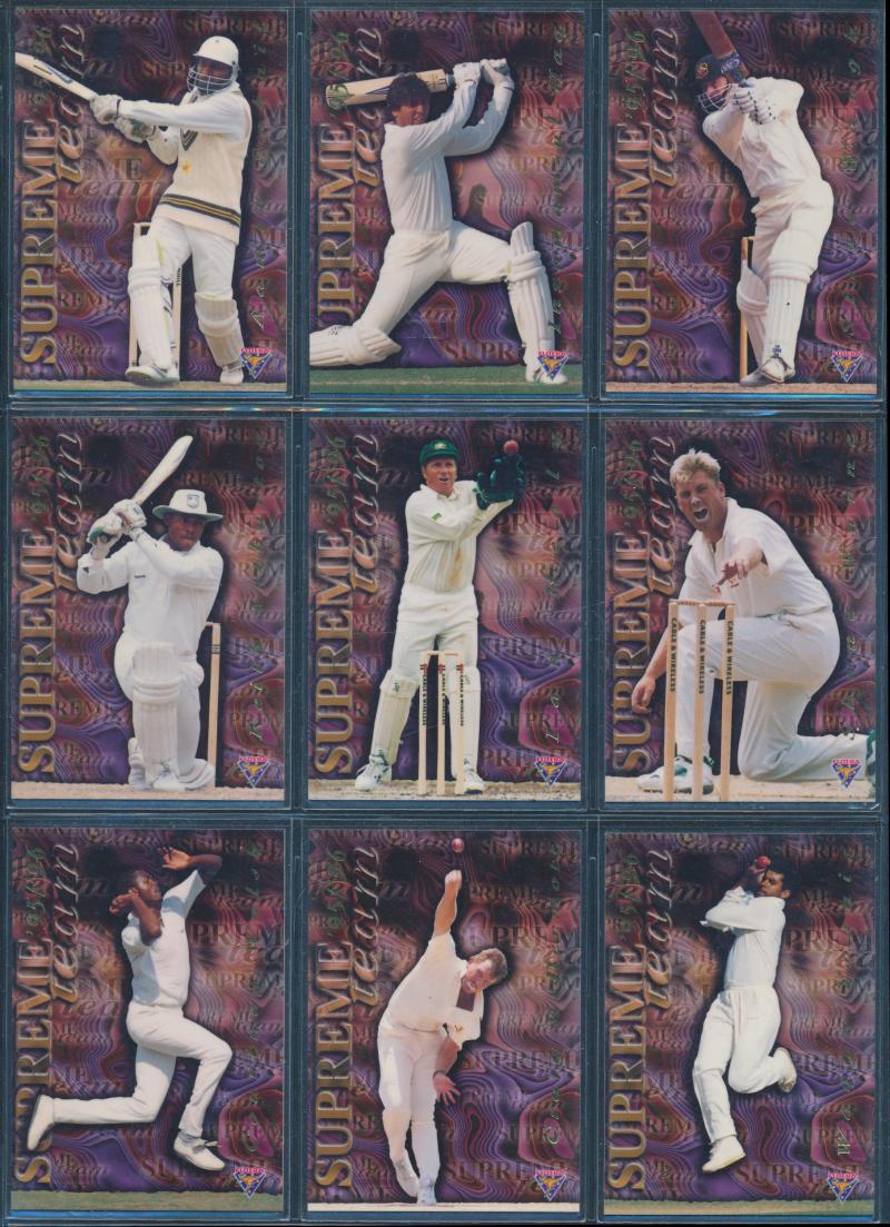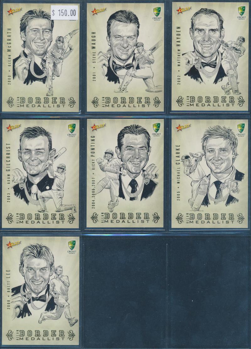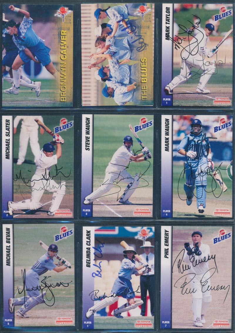 Greatest Legend - Sir Donald Bradman' & 'Allan Border - The Master'; 1994 Futera 'Allan Border Hologram' (3); 1995 Futera 'Shane Warne Hat Trick' (8); 1996 Futera '4-Up Mark Waugh Signature'; 1996 Heritage 'Sir Donald Bradman' Sample [4] &