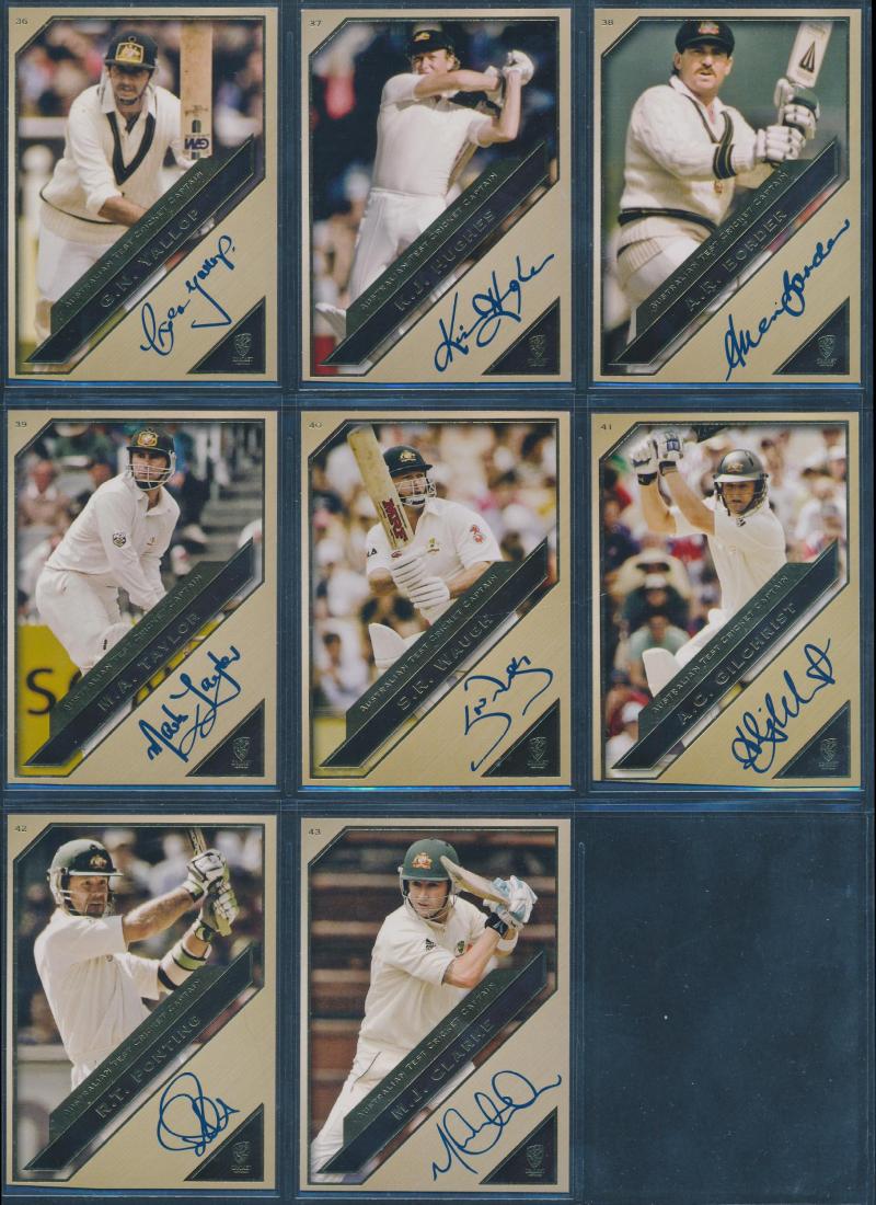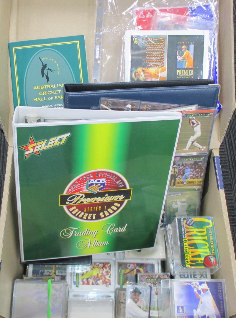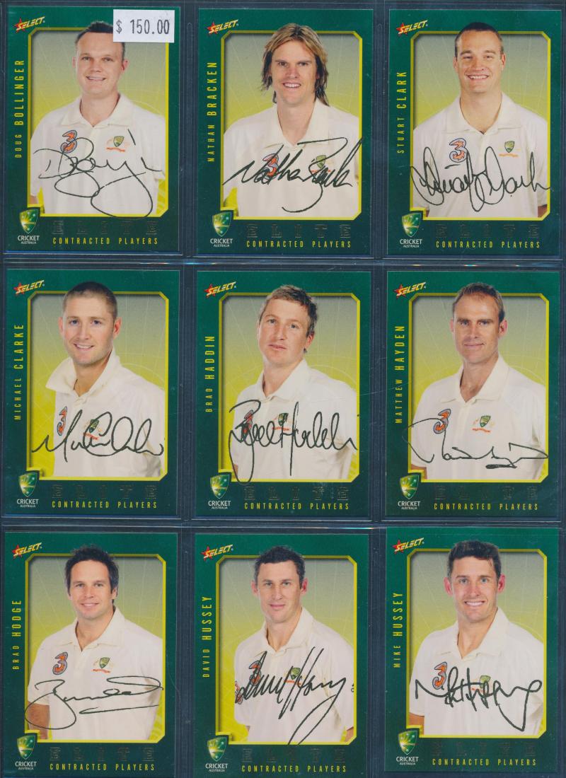 Collection circa 1989-2008 cricket cards (613) with 463 signed including Don Bradman, Mark Taylor, Mark Waugh, Glenn McGrath, Dean