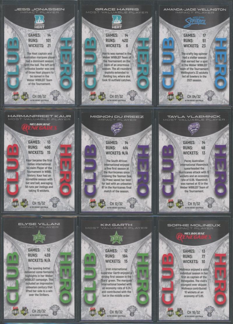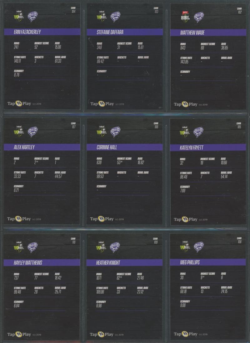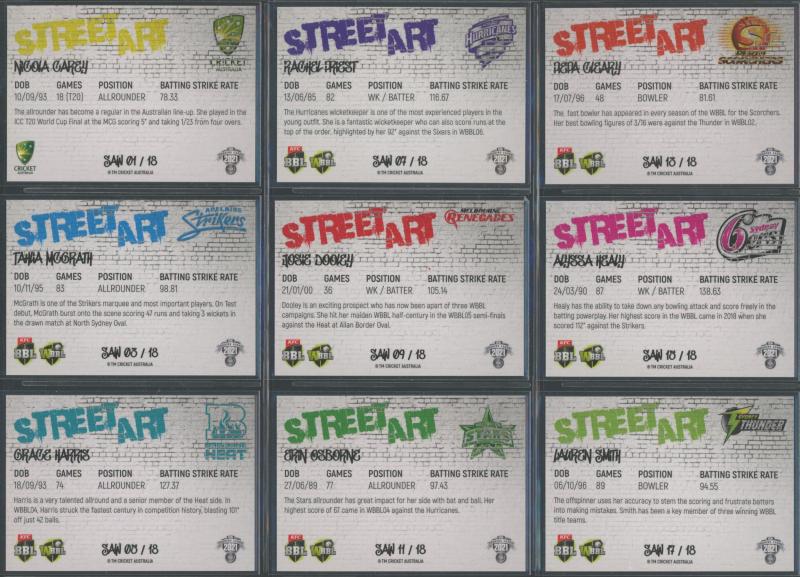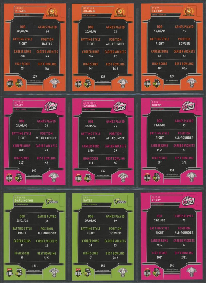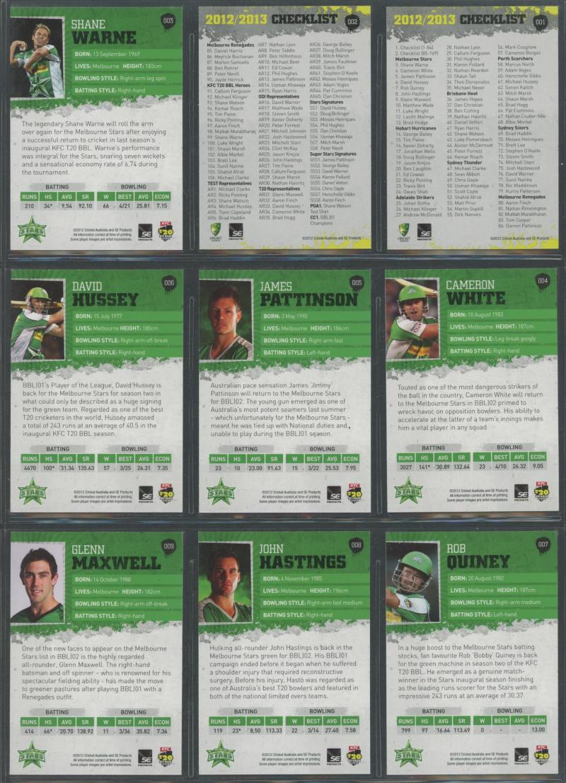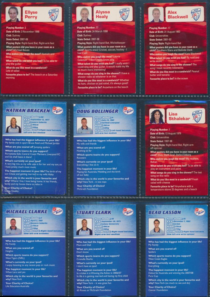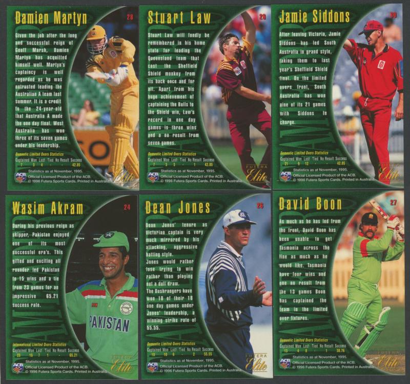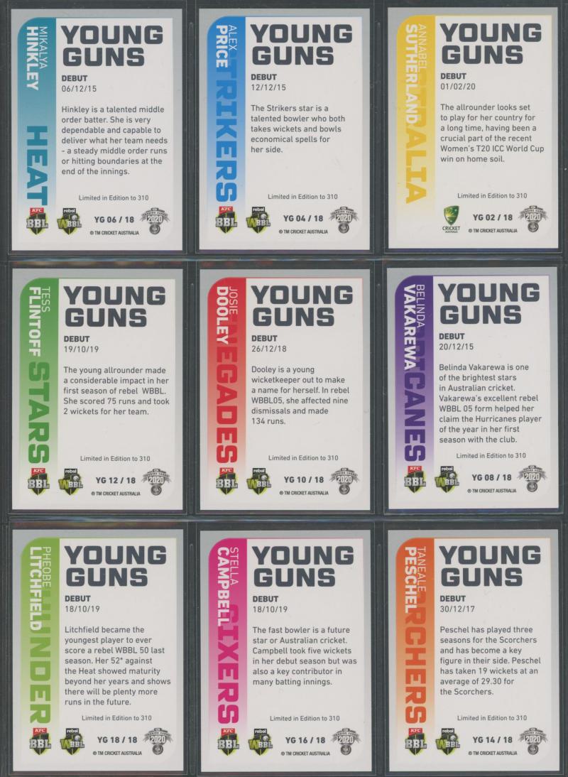 [54] x 2 sets & 1984 [50] x 2 sets; 1985 Kanga Cricket [63]; 1989-90 FAI [24]; 1995-96 Mazda 'Redbacks Shield Winners' [15]; 1996 VCA Centenary [100]; 2006 Weetbaix 'Champions Work Harder' [6], mainly Fine/Very Fine.