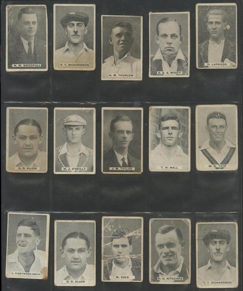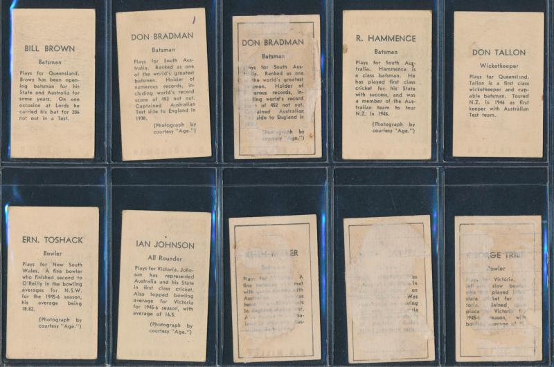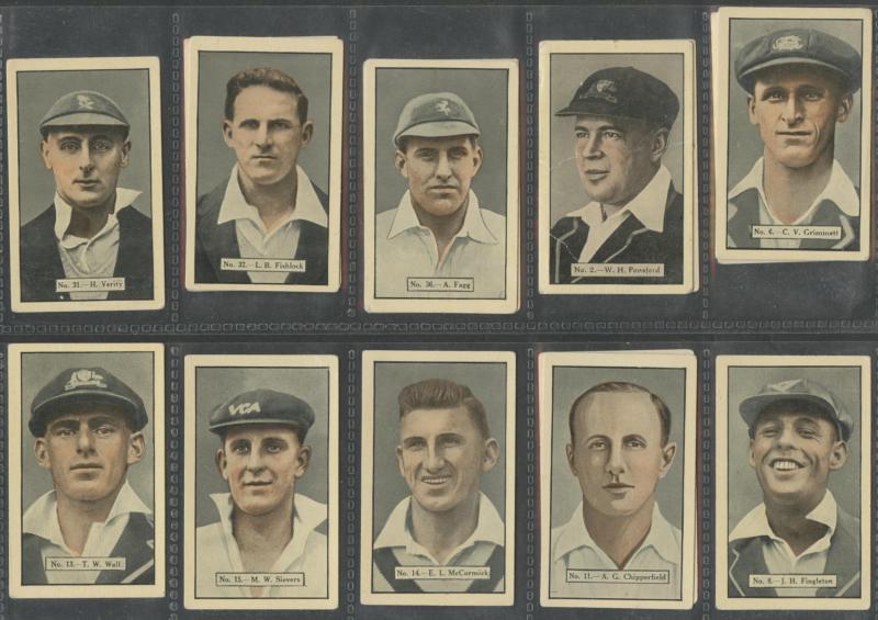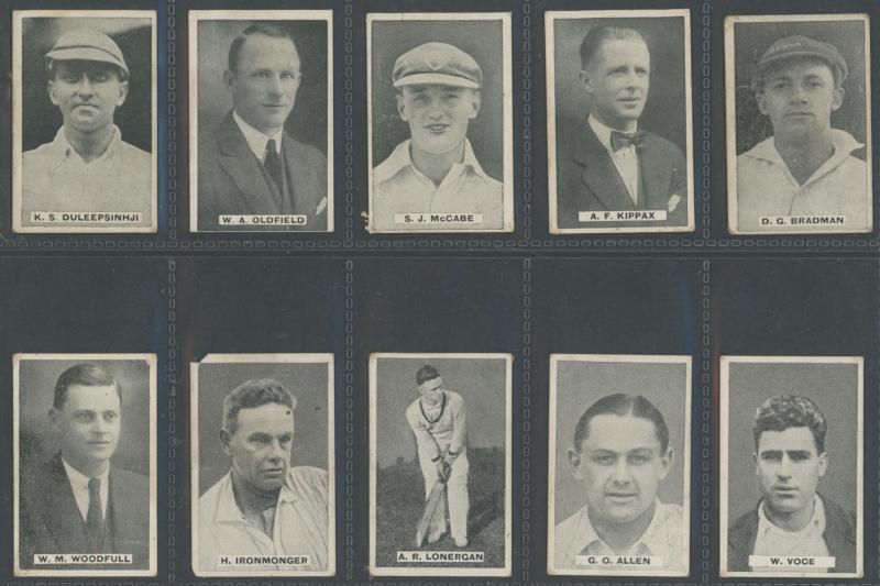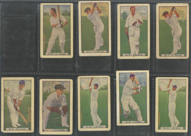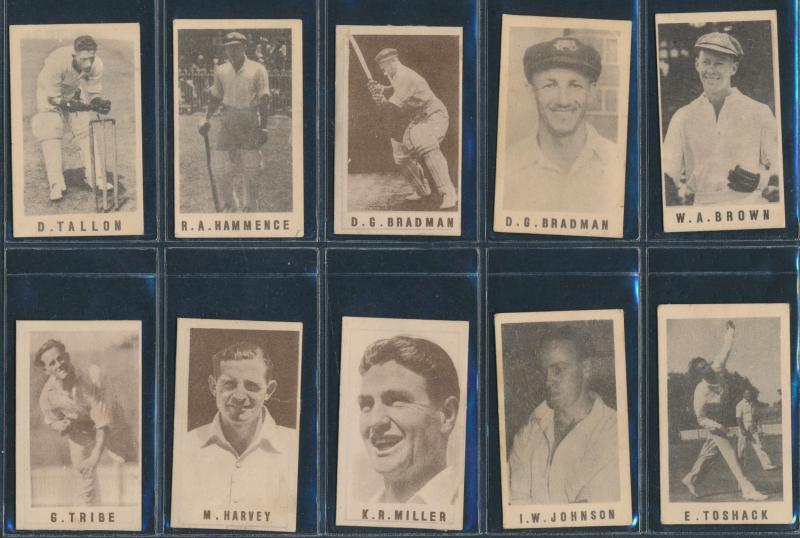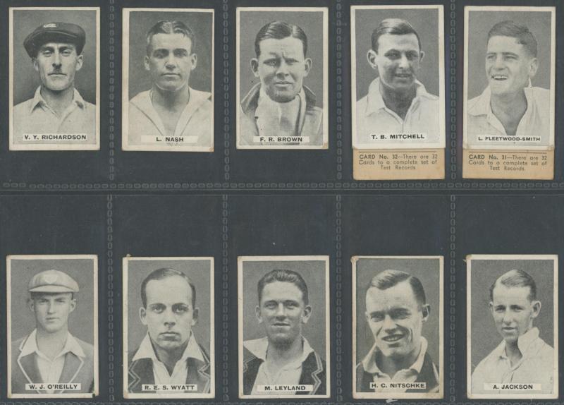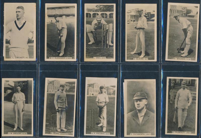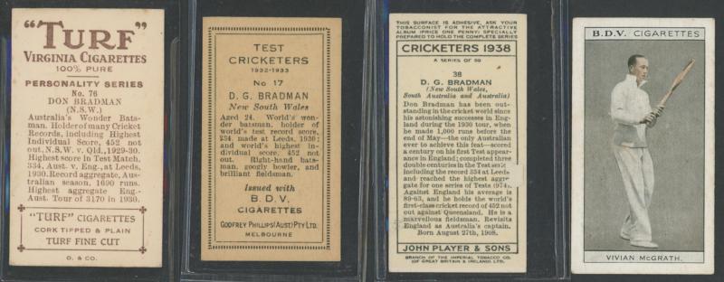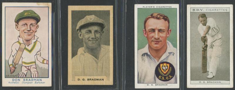 (9); 1932 Sweetacres 'Test Match Records' [32]; 1932-38 Don Bradman cards (4); 1948 Nabisco 'Leading Cricketers [32]; 1951 Godfrey Phillips 'Cricketers' package issue [19/25], mainly Fair/Very Fine.