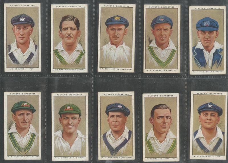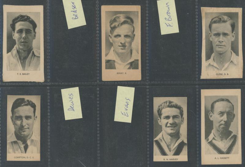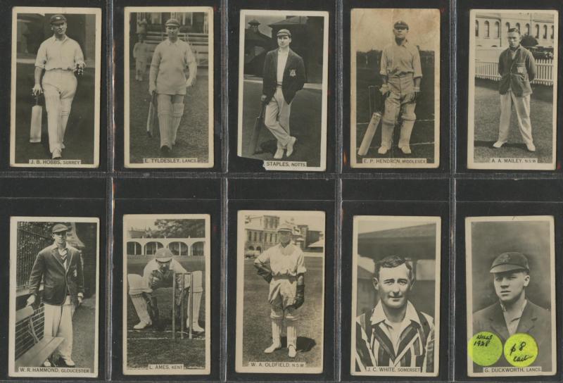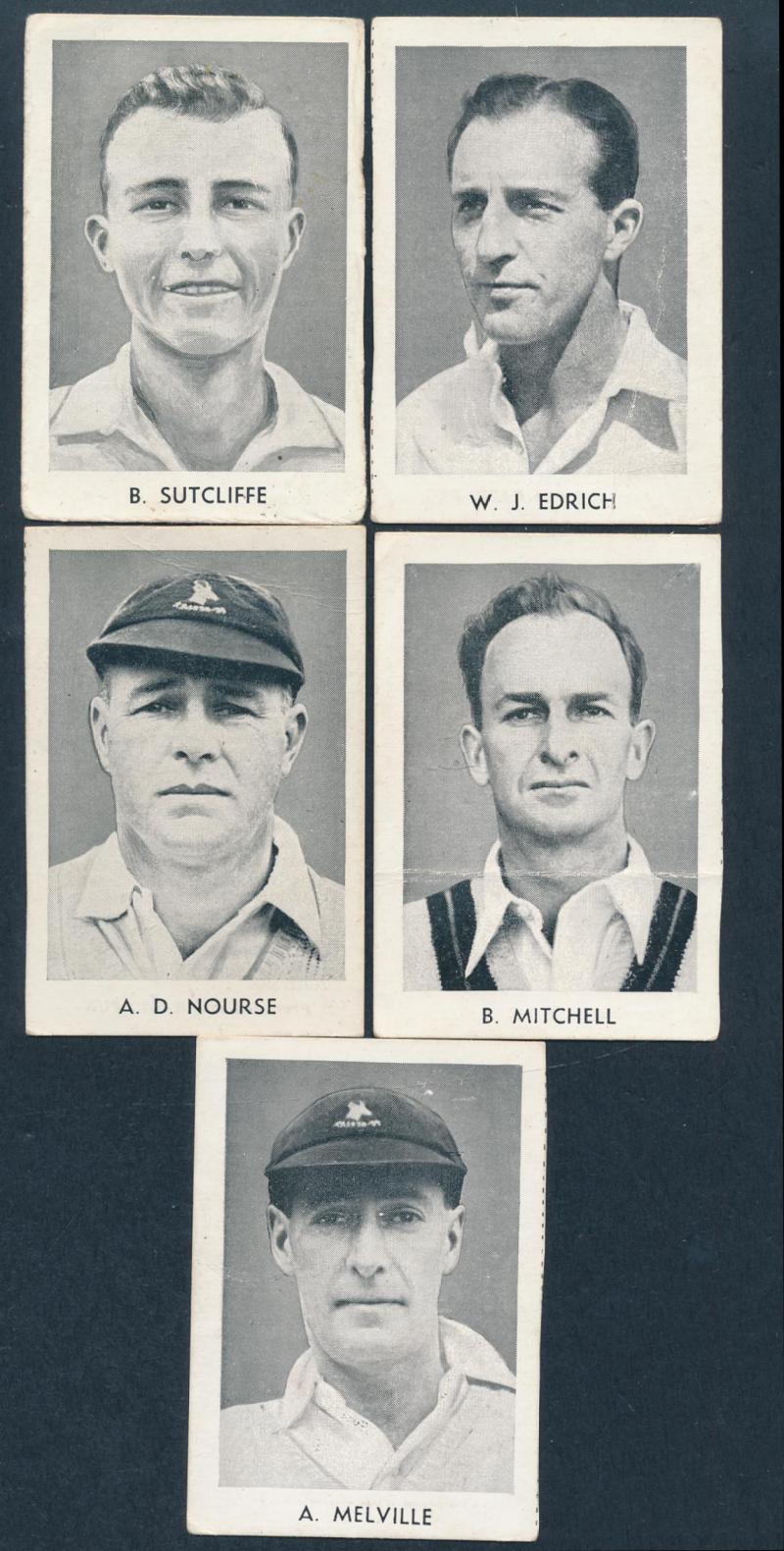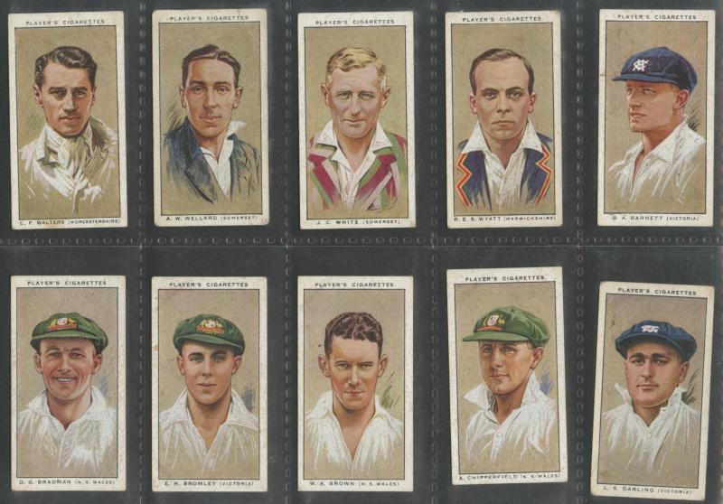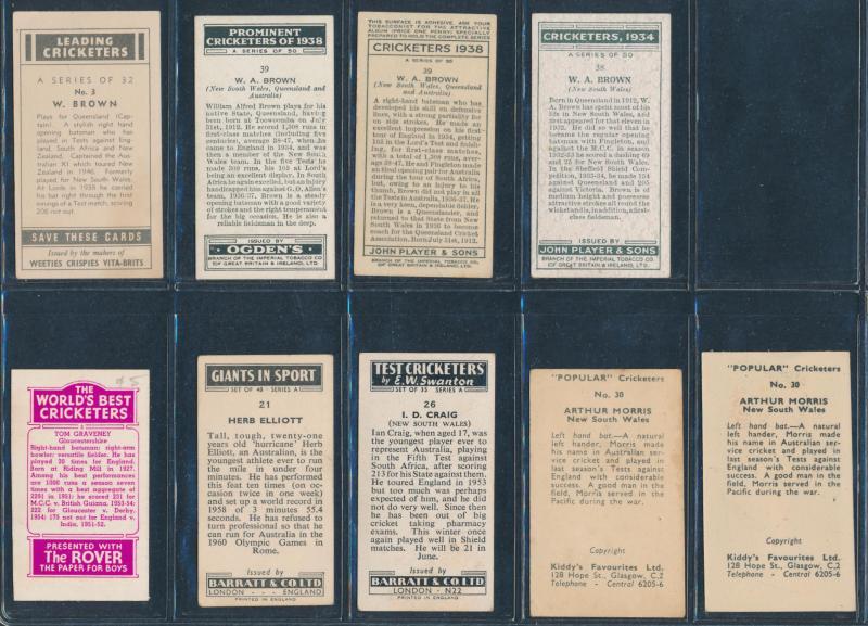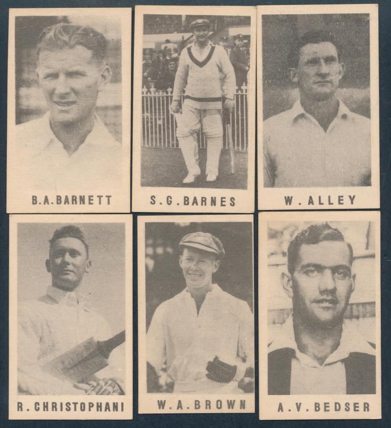 (9); 1932 Sweetacres 'Test Match Records' [32]; 1932-38 Don Bradman cards (4); 1948 Nabisco 'Leading Cricketers [32]; 1951 Godfrey Phillips 'Cricketers' package issue [19/25], mainly Fair/Very Fine.