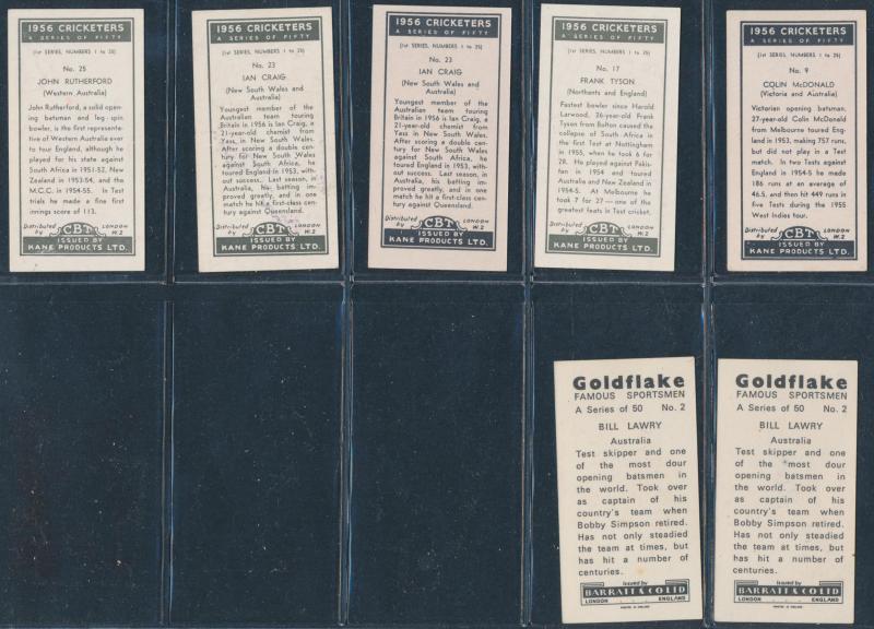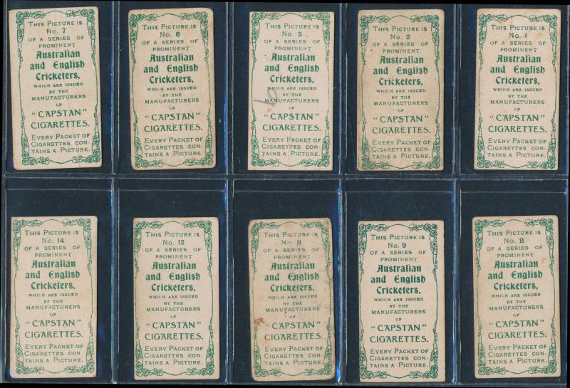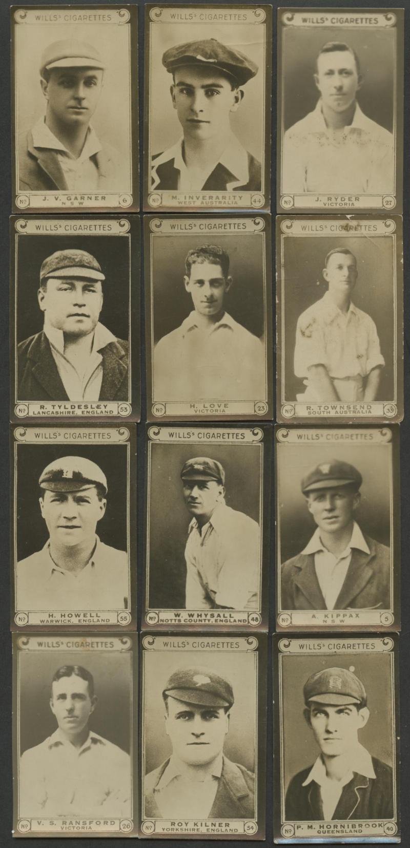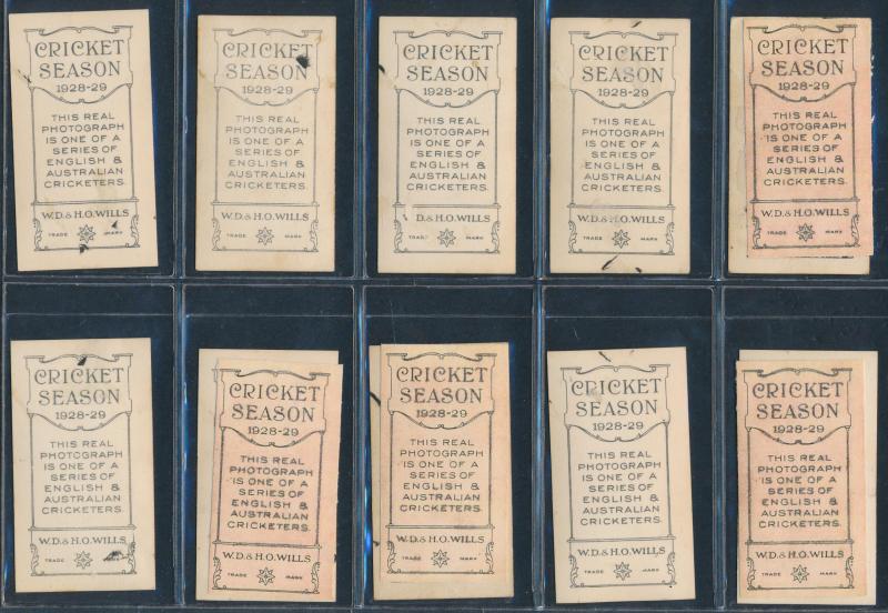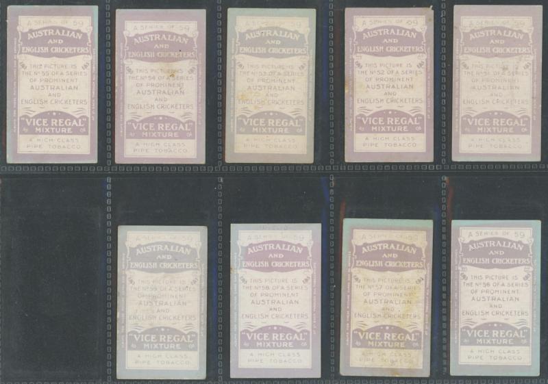 Collection 1911-51 range including 1911-12 Wills 'Australian & English Cricketers' #51-59 with Capstan backs (9) & Vice Regal backs
