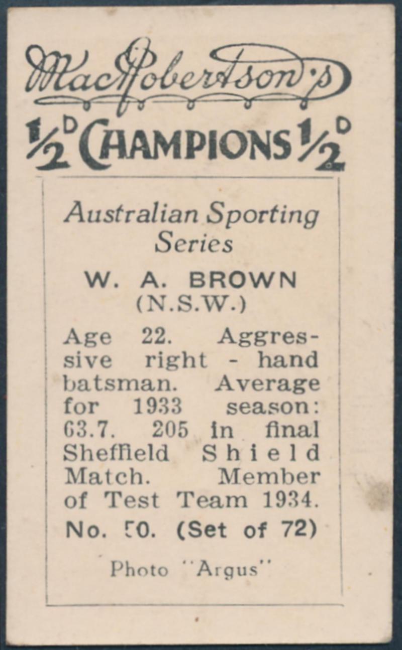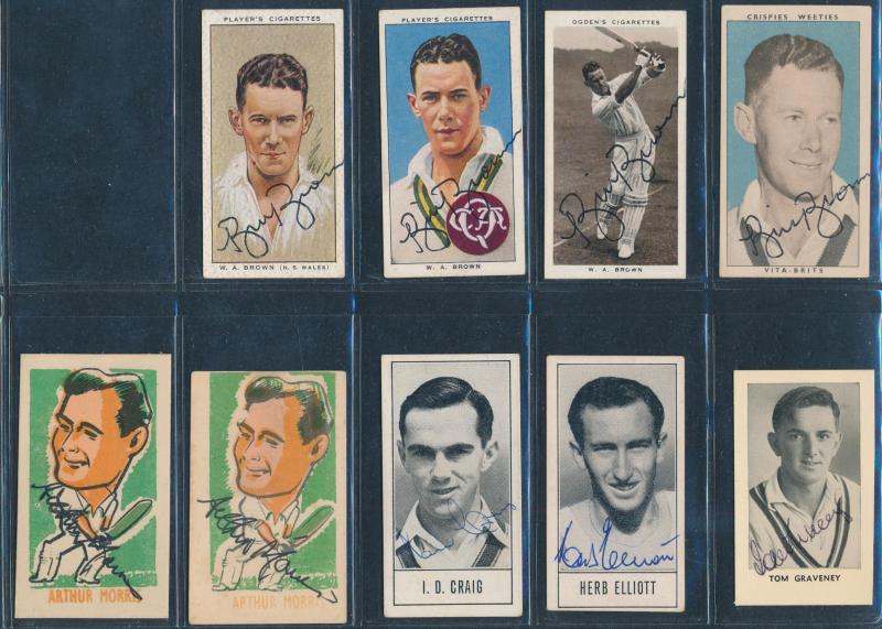 Signed cards 1934-92 collection including Bill Brown (6) one on MacRobertson's ½d Champions, Arthur Morris (2), Ian Craig (3), Bill