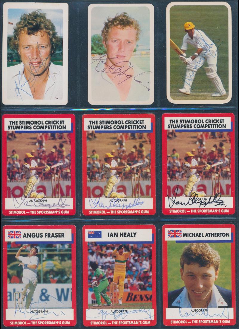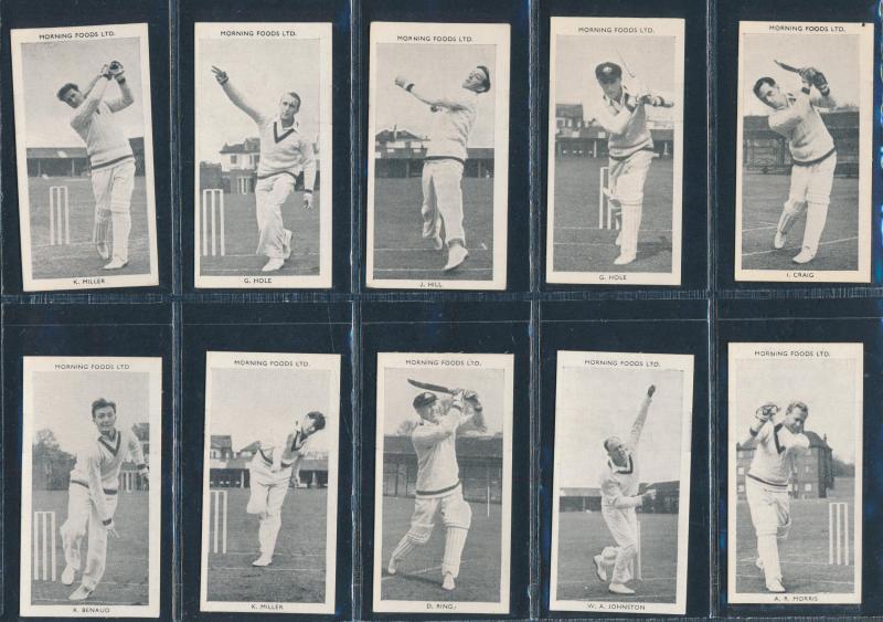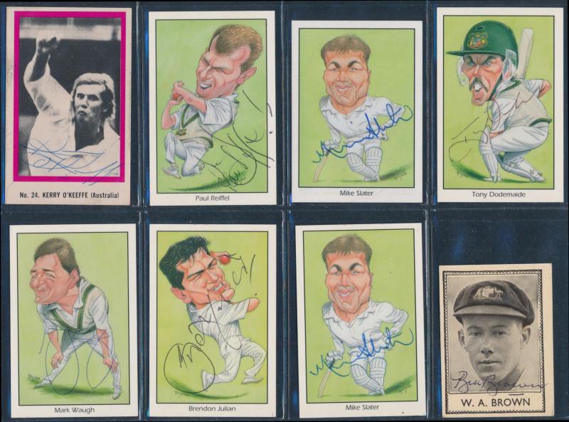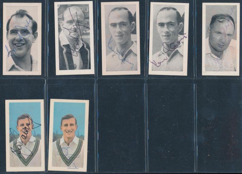 (4); 1948 Nabisco 'Leading Cricketers' [32]; 1953 Morning Foods 'Test Cricketers' [25]; 1954-55 'Cricketers' [28]; signed cards (12) including David Boon (7), mainly Fair/Fine.