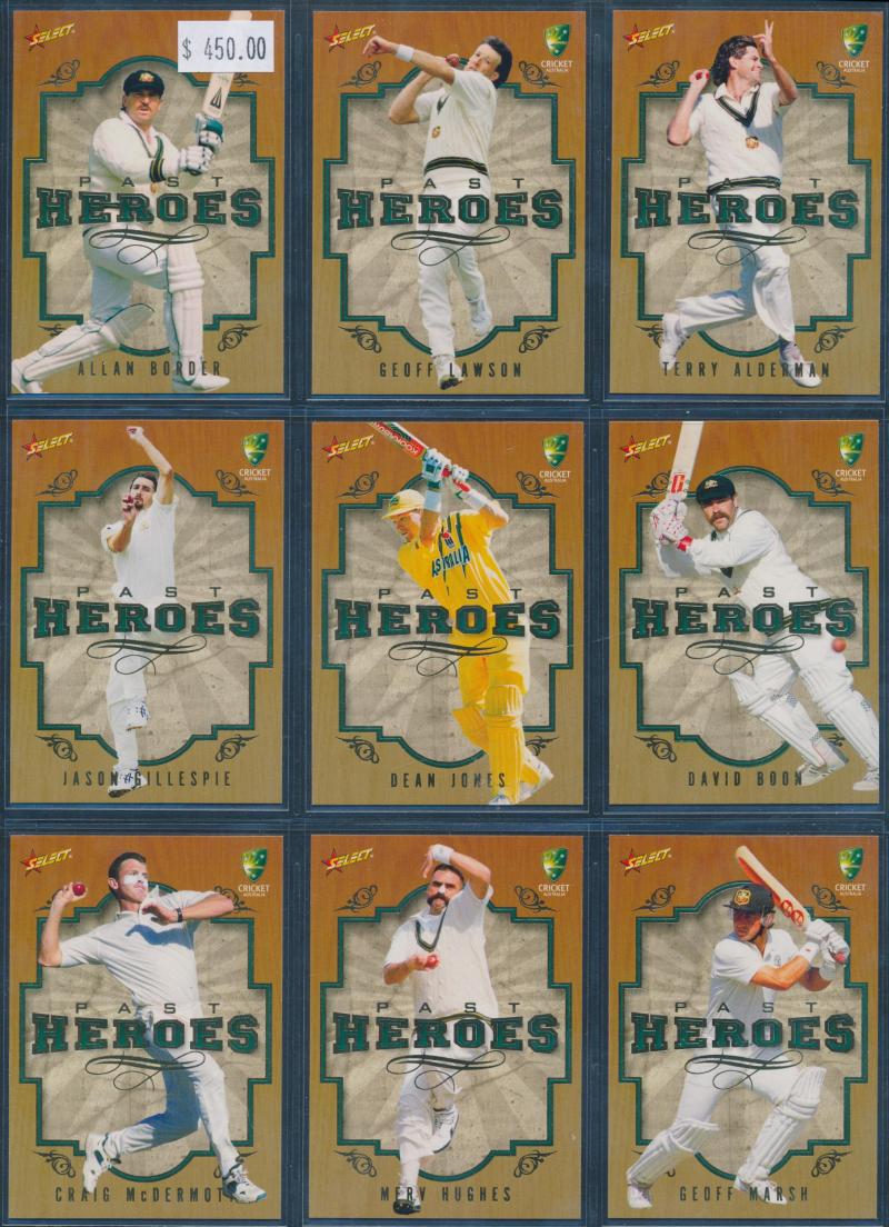 Collection 2000-2017 cricket insert cards in album, including 2008 Select 'Past Heroes' [18/20]; 2011 Heritage 'Australian Test