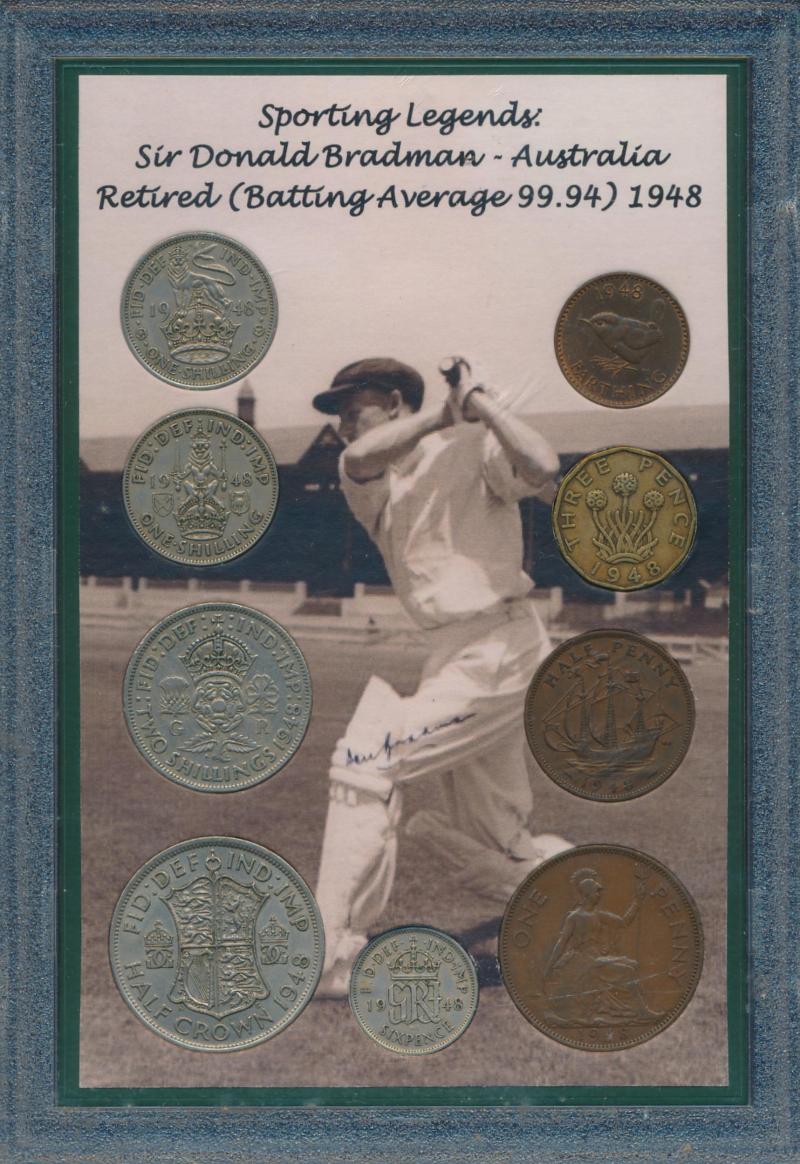 Sir Donald Bradman' 1948 English coin set in perspex case, mainly Fine/Very Fine.