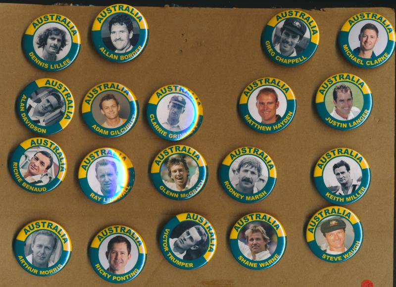 Oddments circa 2004 'Australia' cricket badges [20]; circa 2000-12 reproduced 1930s cricket badges (20); plus 'Sporting Legends -