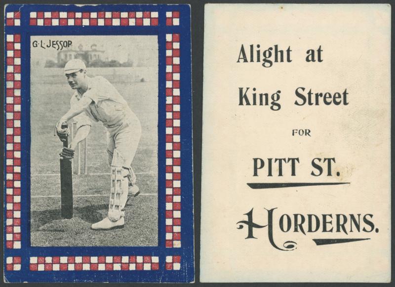 1902 Horderns' 'English Cricketers' - GL Jessop, with same front & border as the McCracken's set, Fine condition. A new discovery,