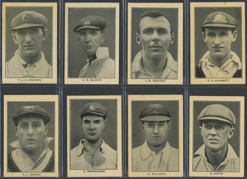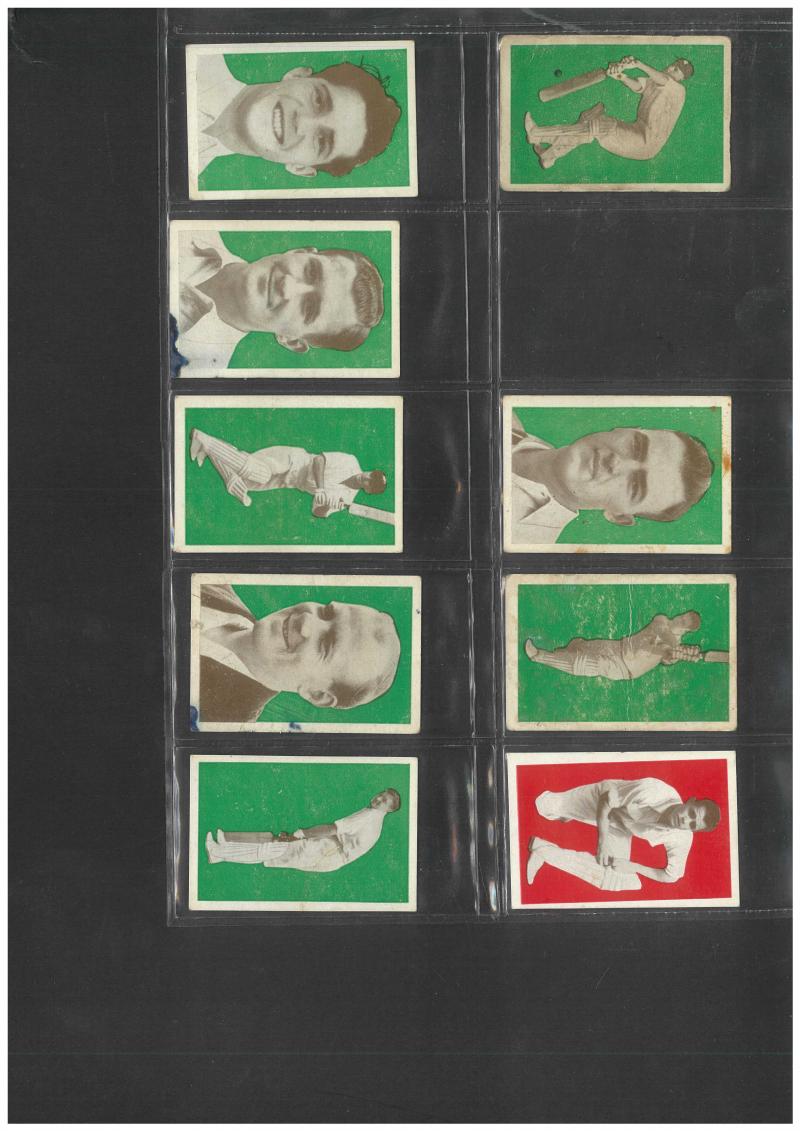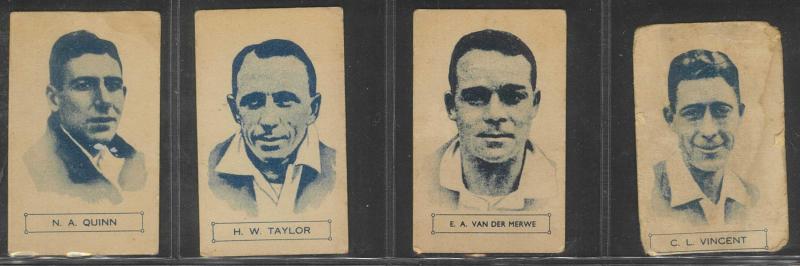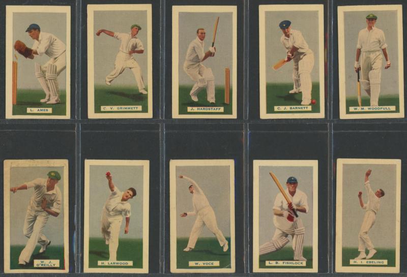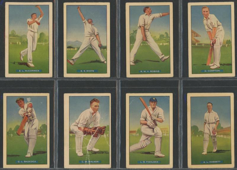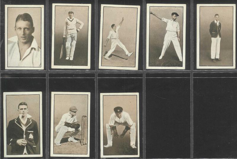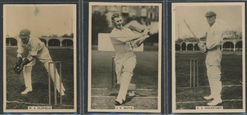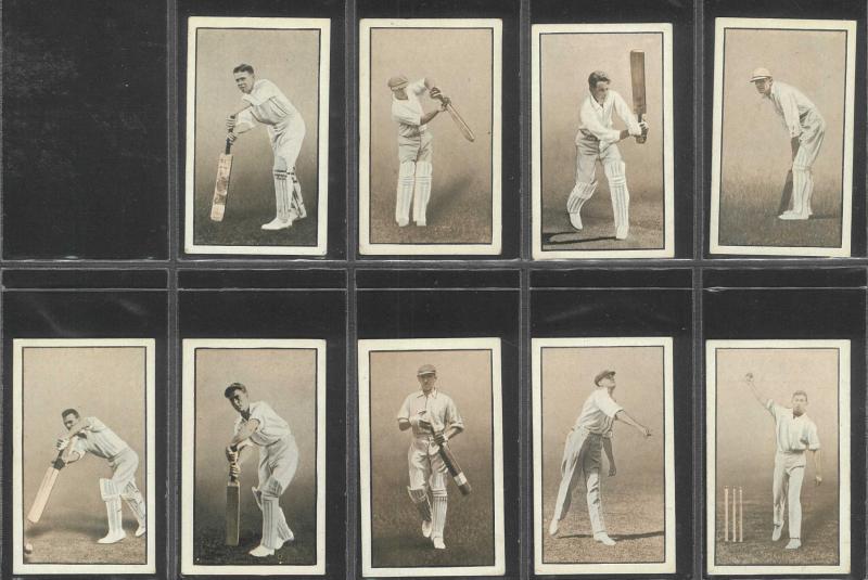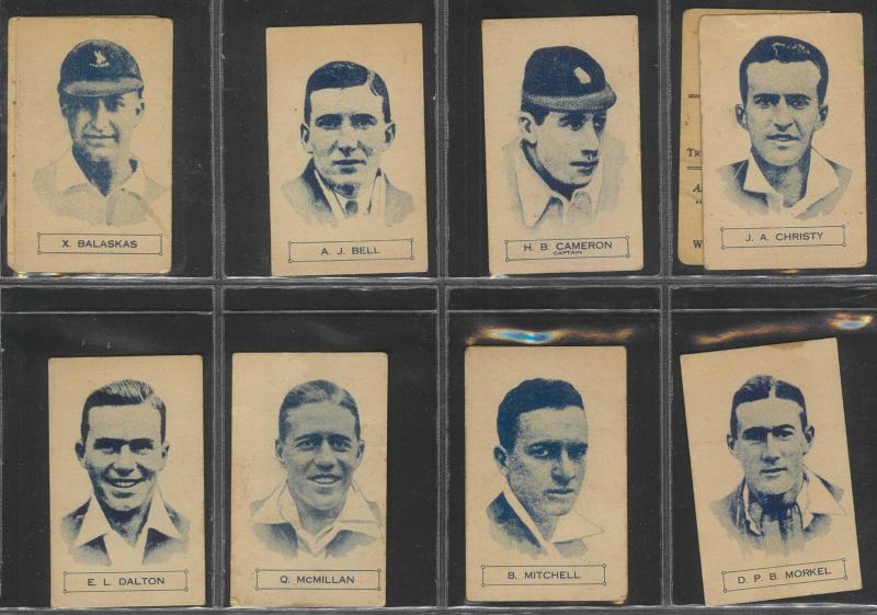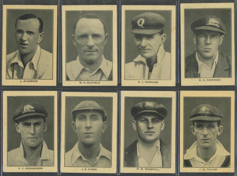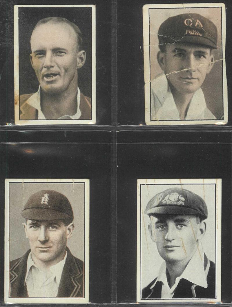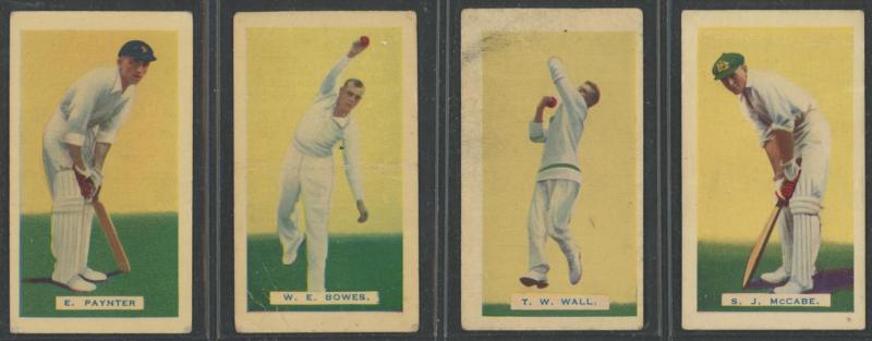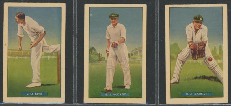 1930-31 'Australian Cricketers' [3/24]; 1931 'South African Cricketers' [12] & 3 spares; 1932-33 'English Cricketers' [2/18]; 1934 'Australian Cricketers' [2/24]; 1936-37 'Australian & English Cricketers' [2/44]; 1958 'Test Cricket Series' [17/32]