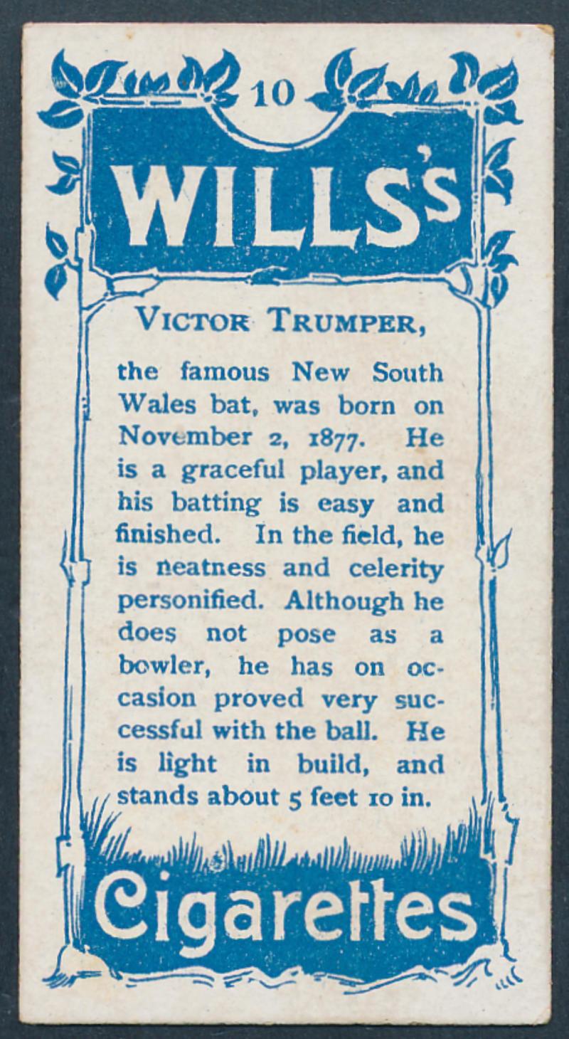 it is unknown if the other cricketers from the McCracken's set were also issued by Horderns. [Anthony Hordern & Sons was a major department store in Sydney NSW]. (Image1)