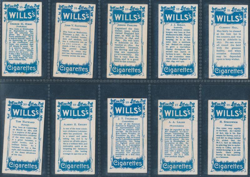 1909 Wills (Australia) 'Australian & English Cricketers', complete set (mix of red & blue borders) [25], mainly Fine/Very Fine. Cat
