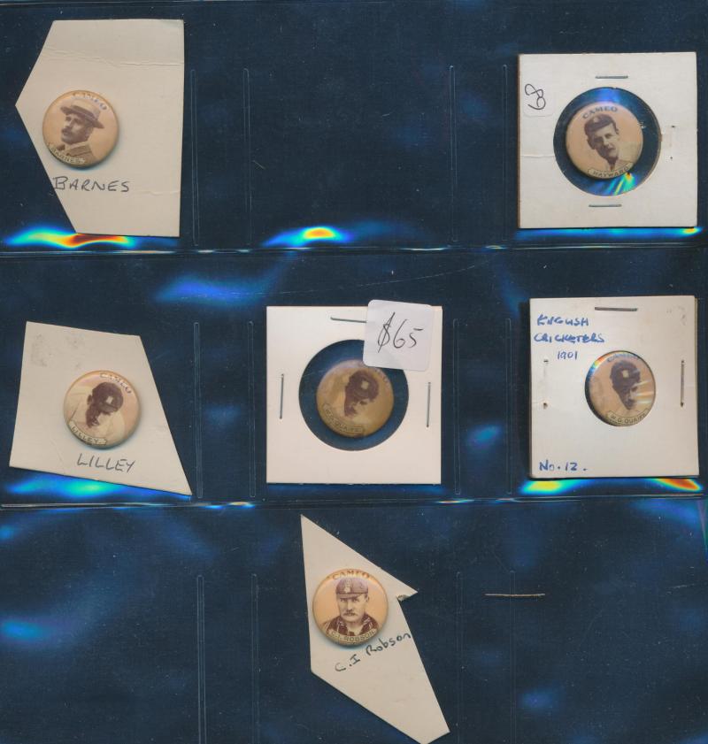 1901 British American Tobacco (issued in Australia) 'Cameo English Cricketers' badges, part set [6/14 known & 1 spare], comprising