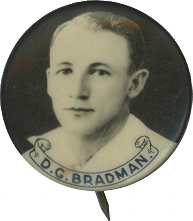 1930 (circa) postcard 'Australian Test Team - D J (Don) Bradman'; plus 25mm badge 'D.G.Bradman', Fine/Very Fine condition.