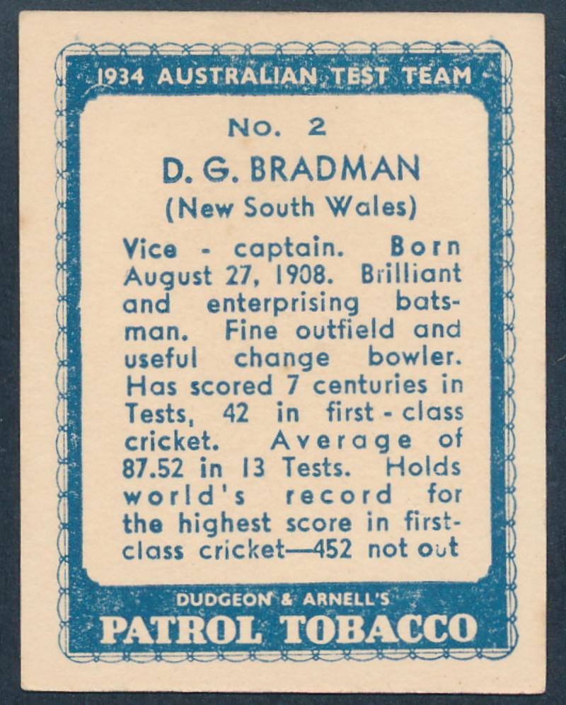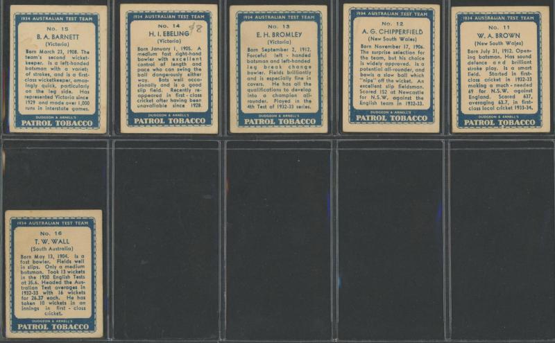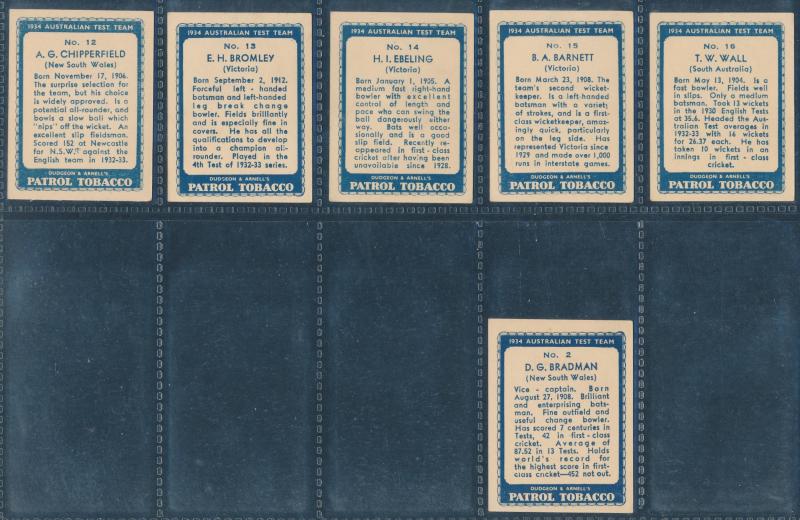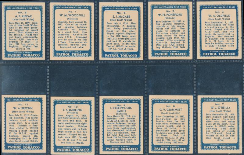 1934 Dudgeon & Arnell (Patrol Tobacco) '1934 Australian Test Team', complete set [16] plus extra Don Bradman, mainly Fine/Very