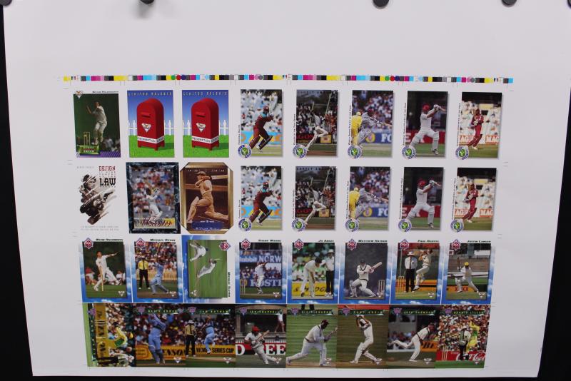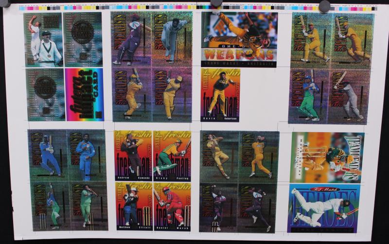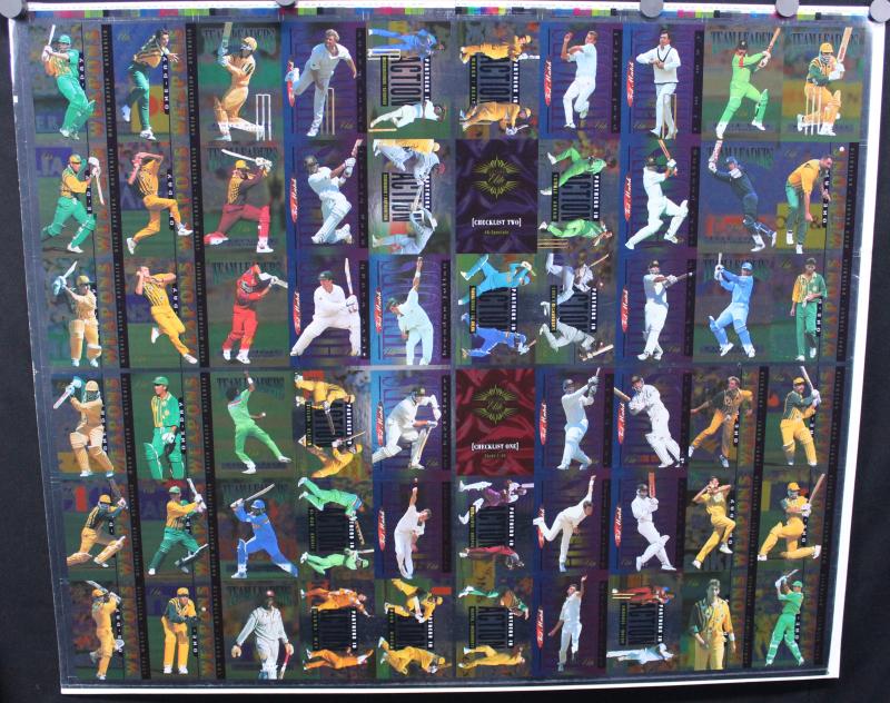 1993-98 Futera uncut sheets, comprising 1993 Cricket (31); 1995 Cricket [110] in two sheets; 1996 Cricket [60] plus box & chase