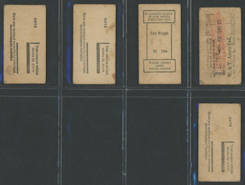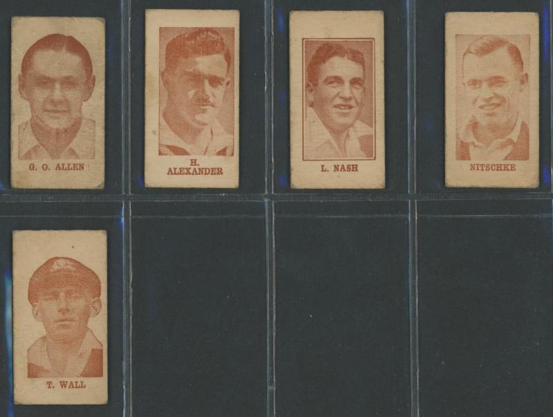 1932-33 Weight Ticket Cards showing 'Cricketers' in reddish brown, comprising Anonymous (5) - H Alexander, L Nash, Nitshke,