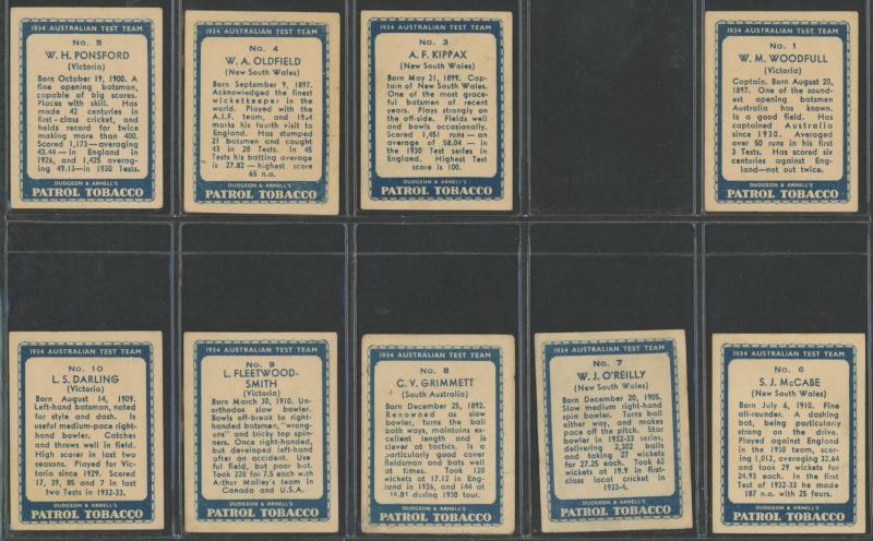 1934 Dudgeon & Arnell (Patrol Tobacco) '1934 Australian Test Team', complete set [16], mainly Fair/Very Fine. Cat £192.