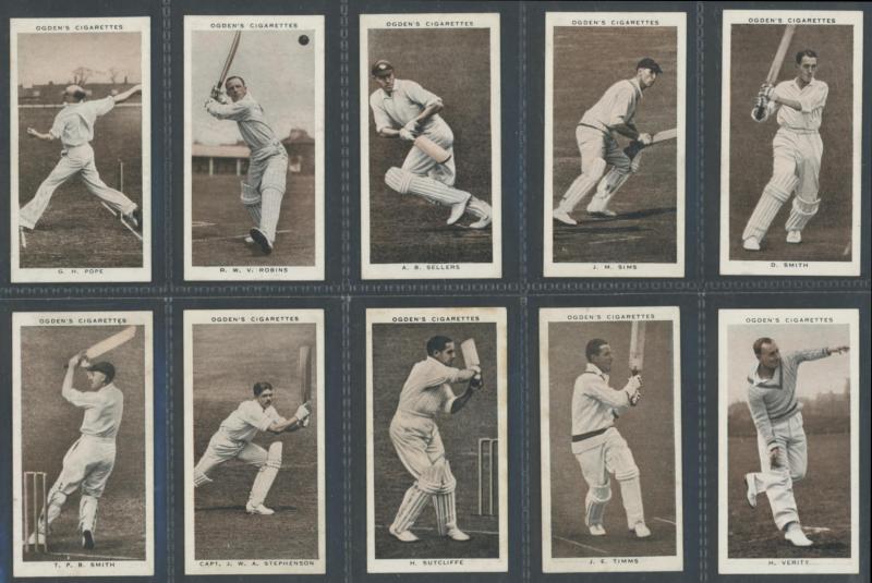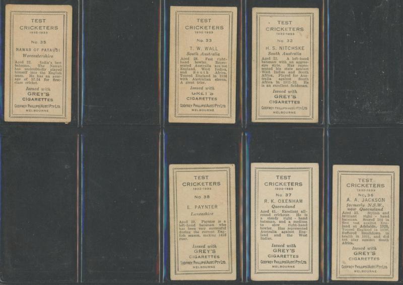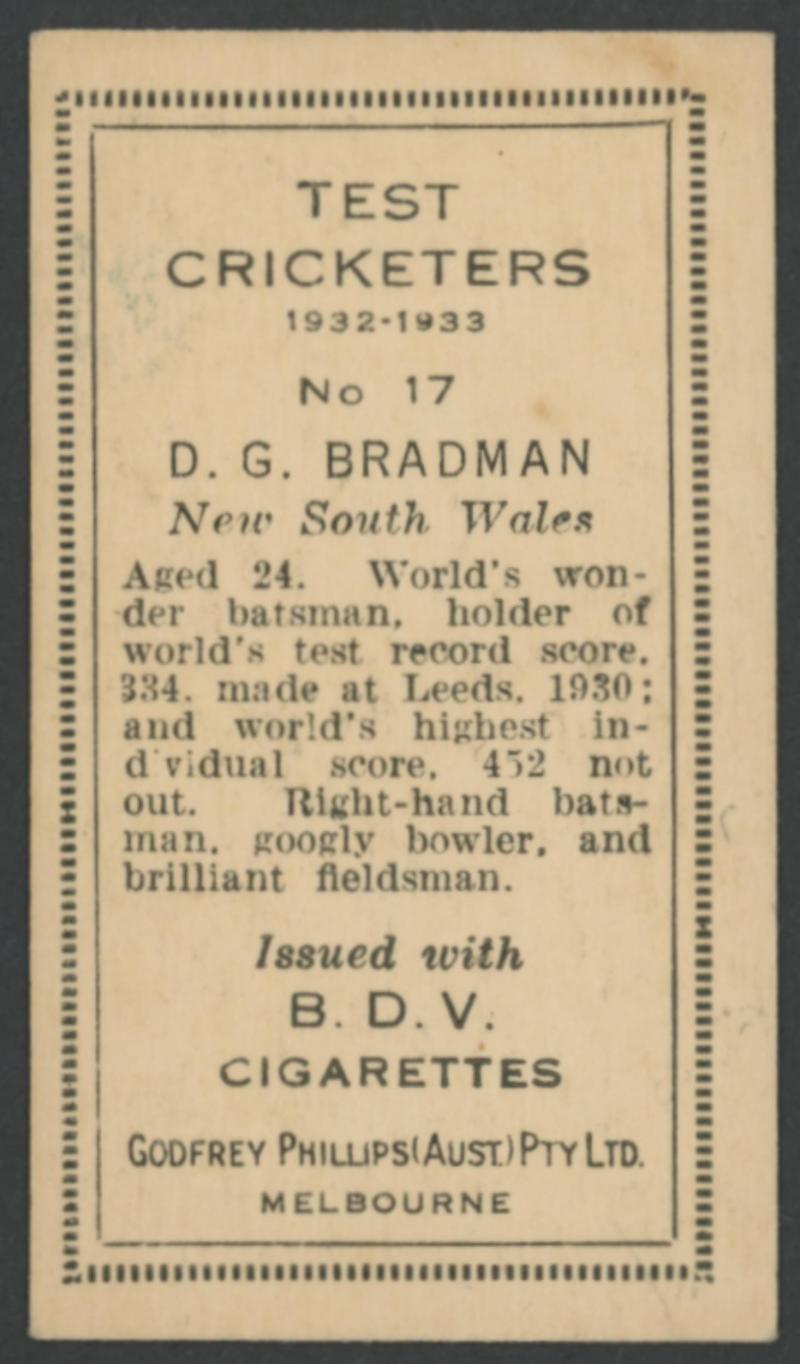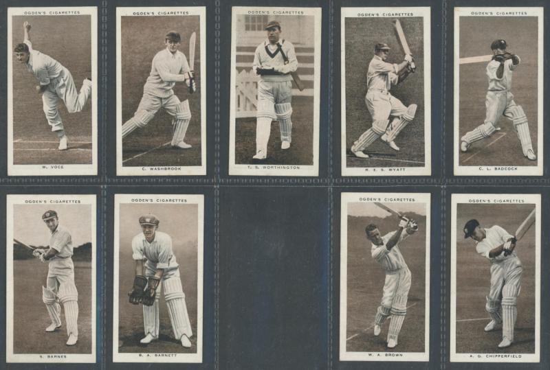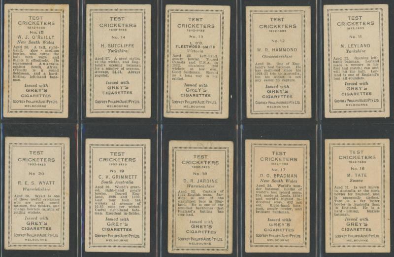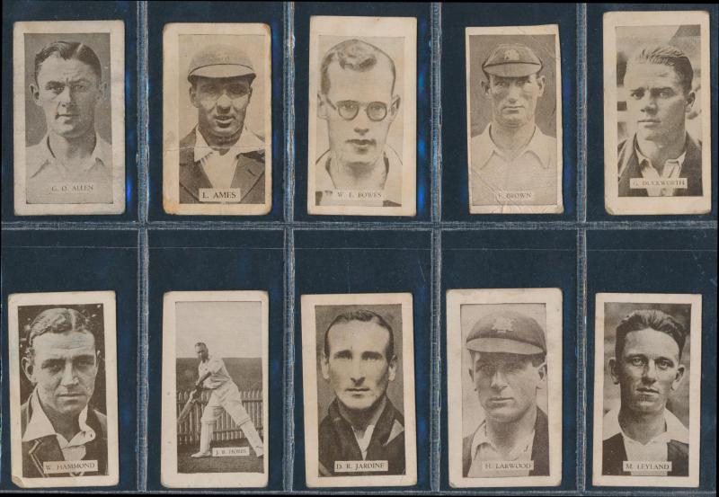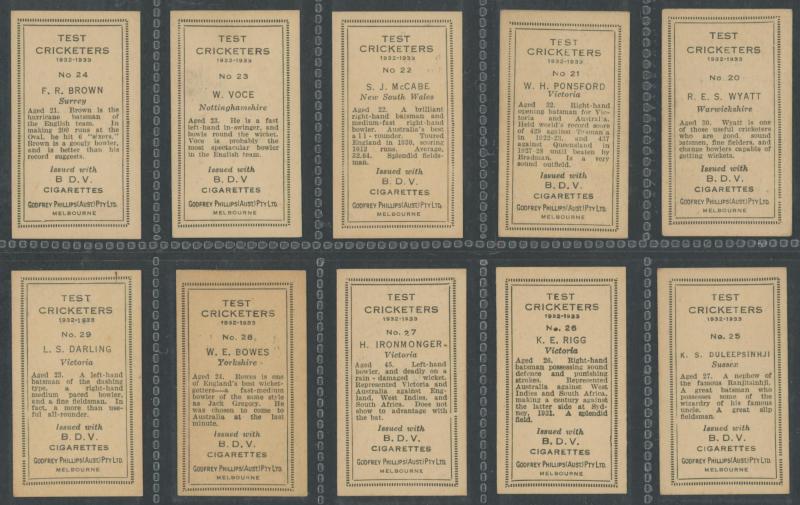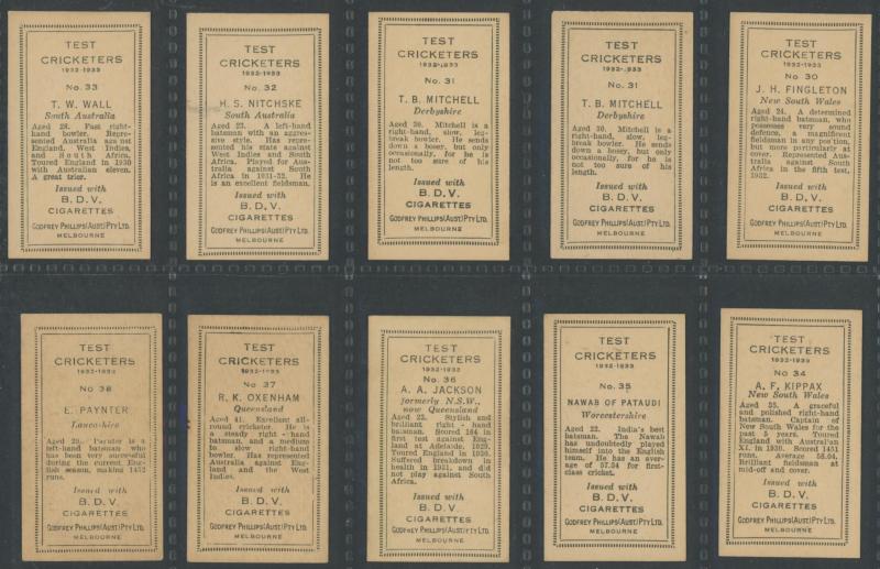 1932 Godfrey Phillips 'Test Cricketers 1932-1933' with BDV Cigarettes on back, complete set including Jardine & Mitchell error