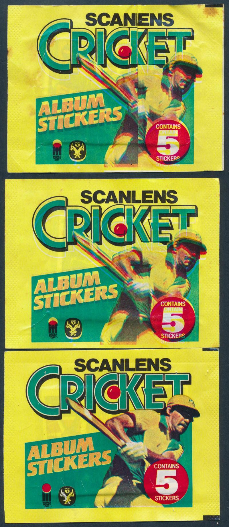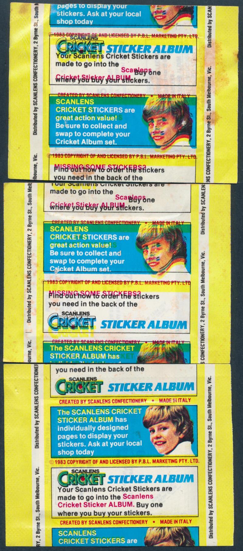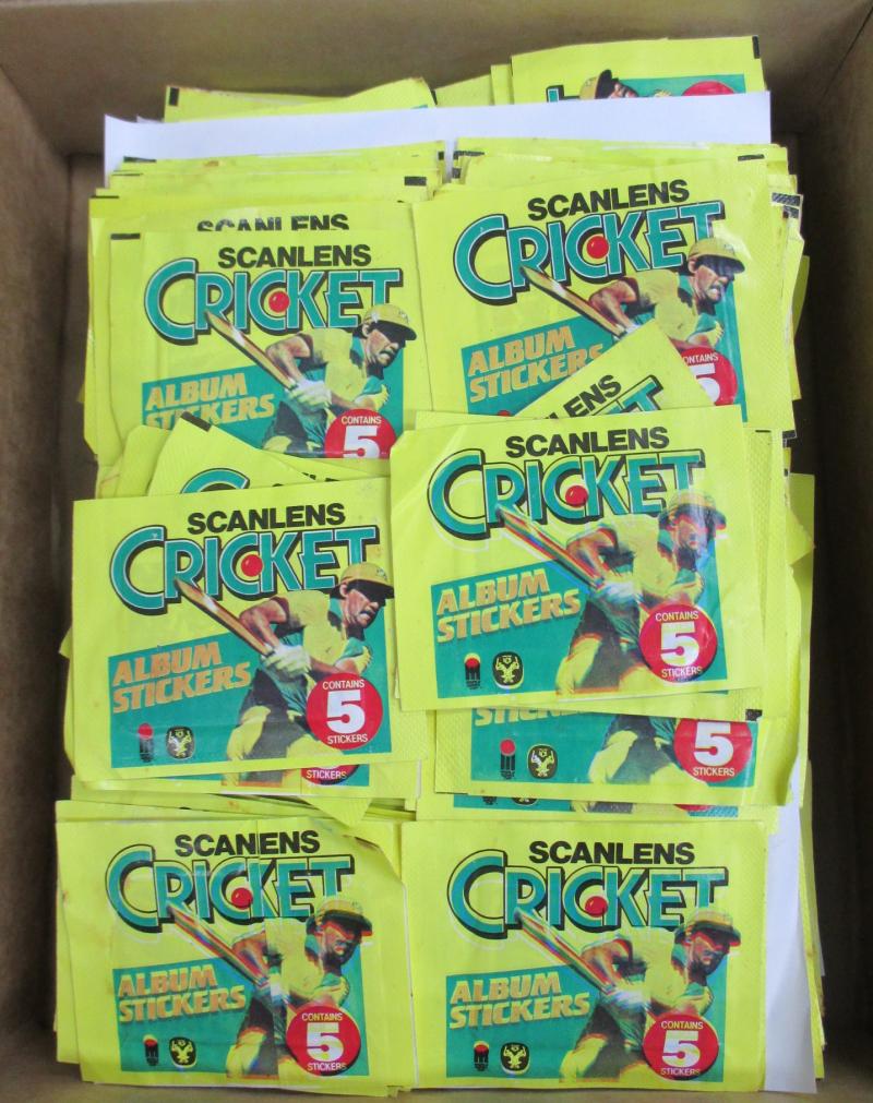1983 Scanlens 'Cricket Stickers' unopened packets (circa 420), mainly Fine/Very Fine.