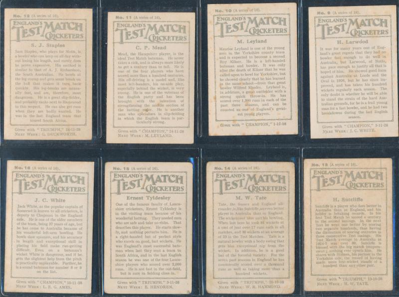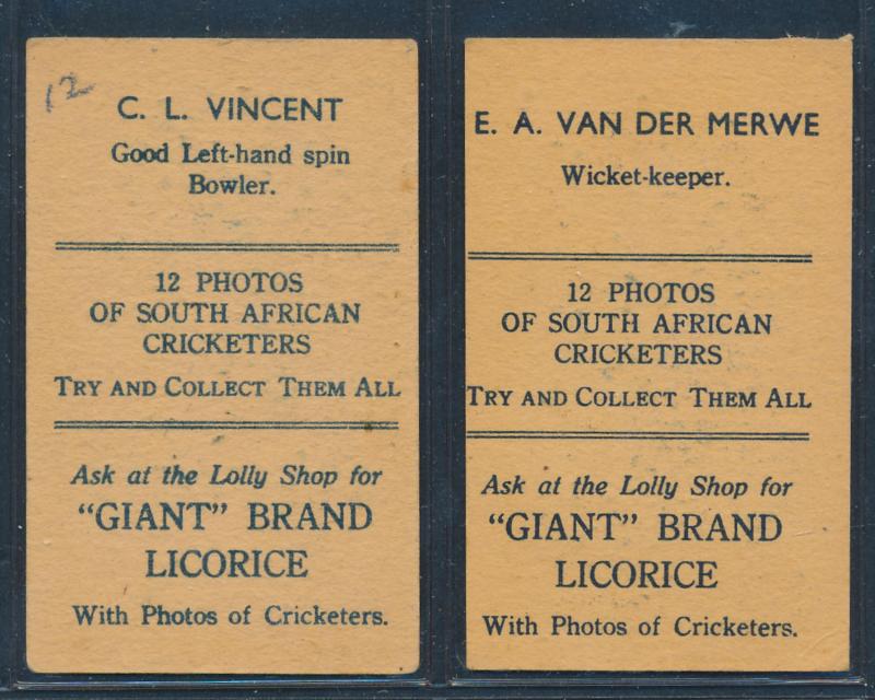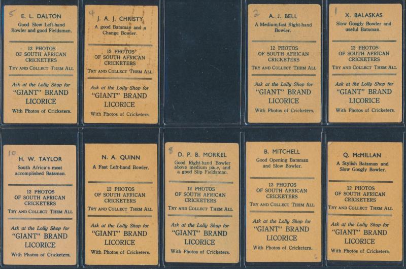 1931 Australian (Giant) Licorice 'South African Cricketers', complete set [12]; plus 1928 Amalgamated Press 'England's Test Match