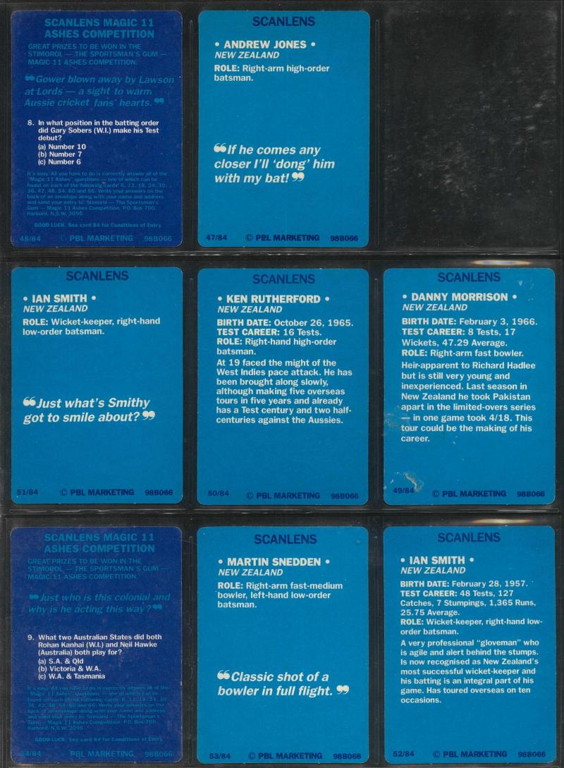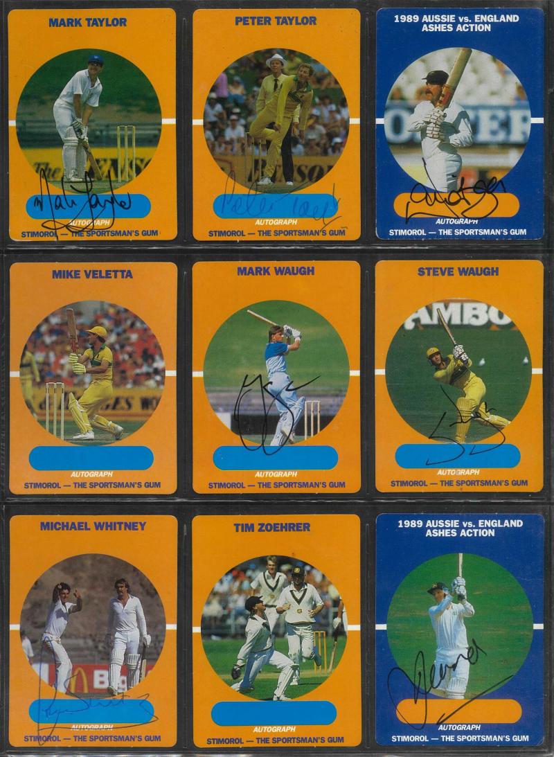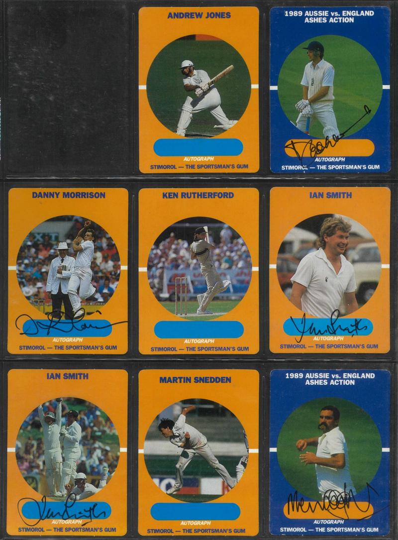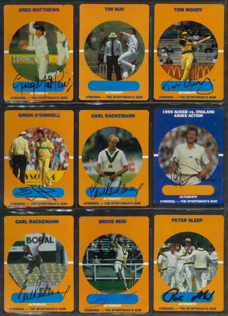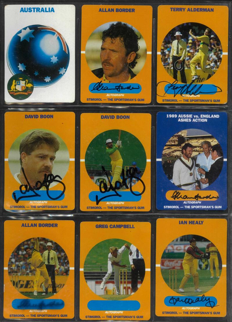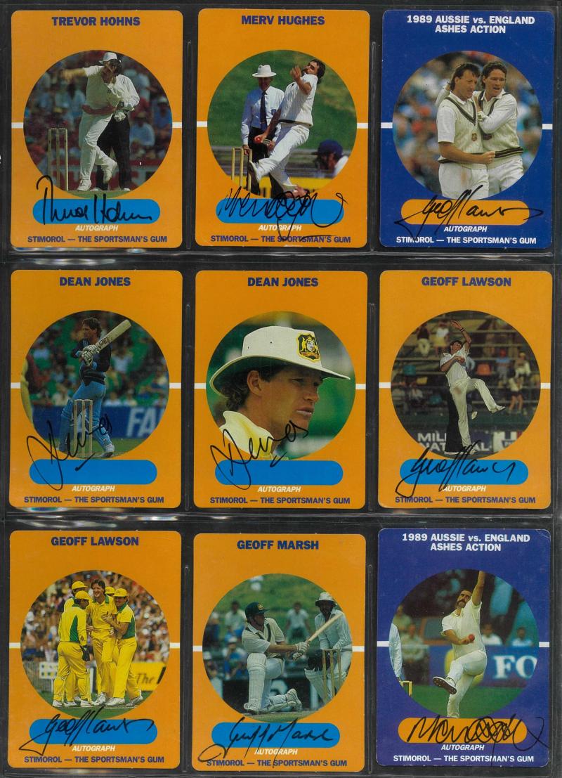 1989-90 Scanlens/Stimorol 'Cricketers', complete set [84] with 45 cards signed including Allan Border, Dean Jones, Richard Hadlee,