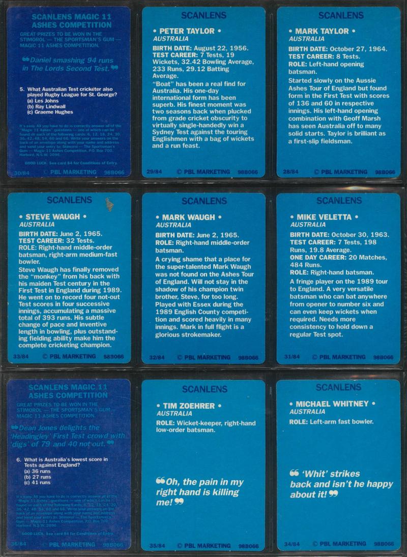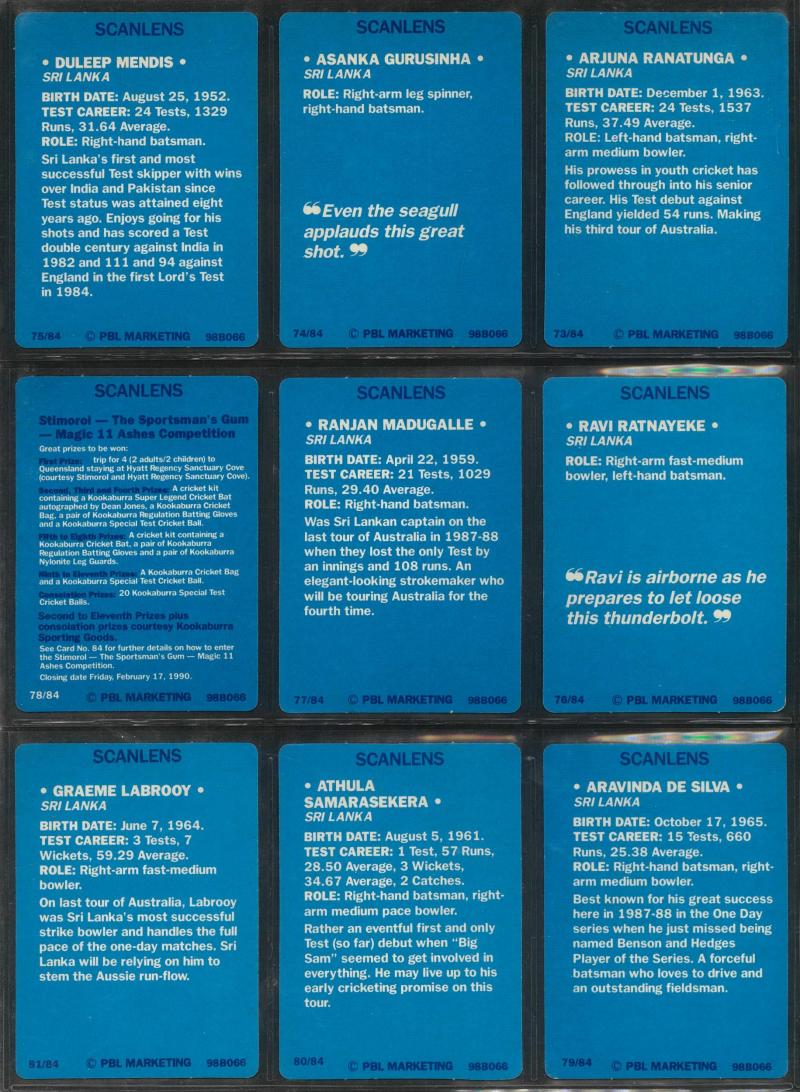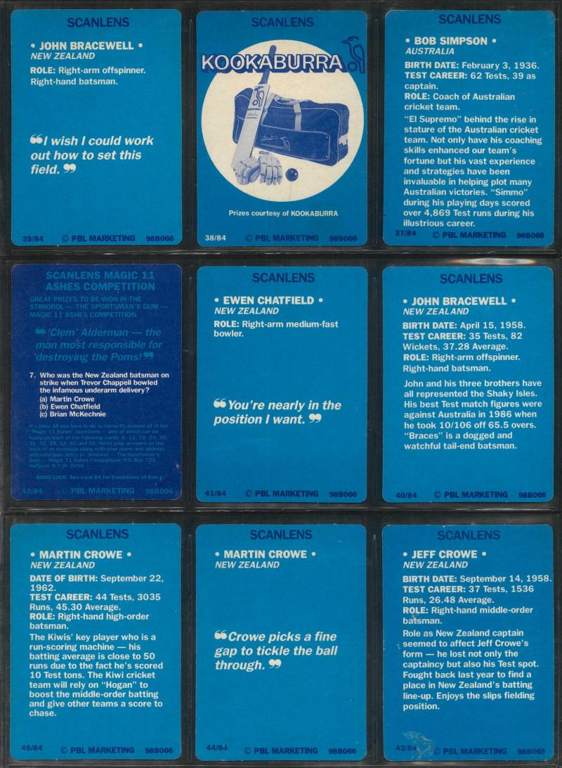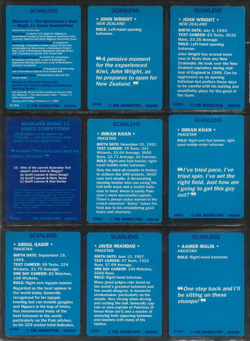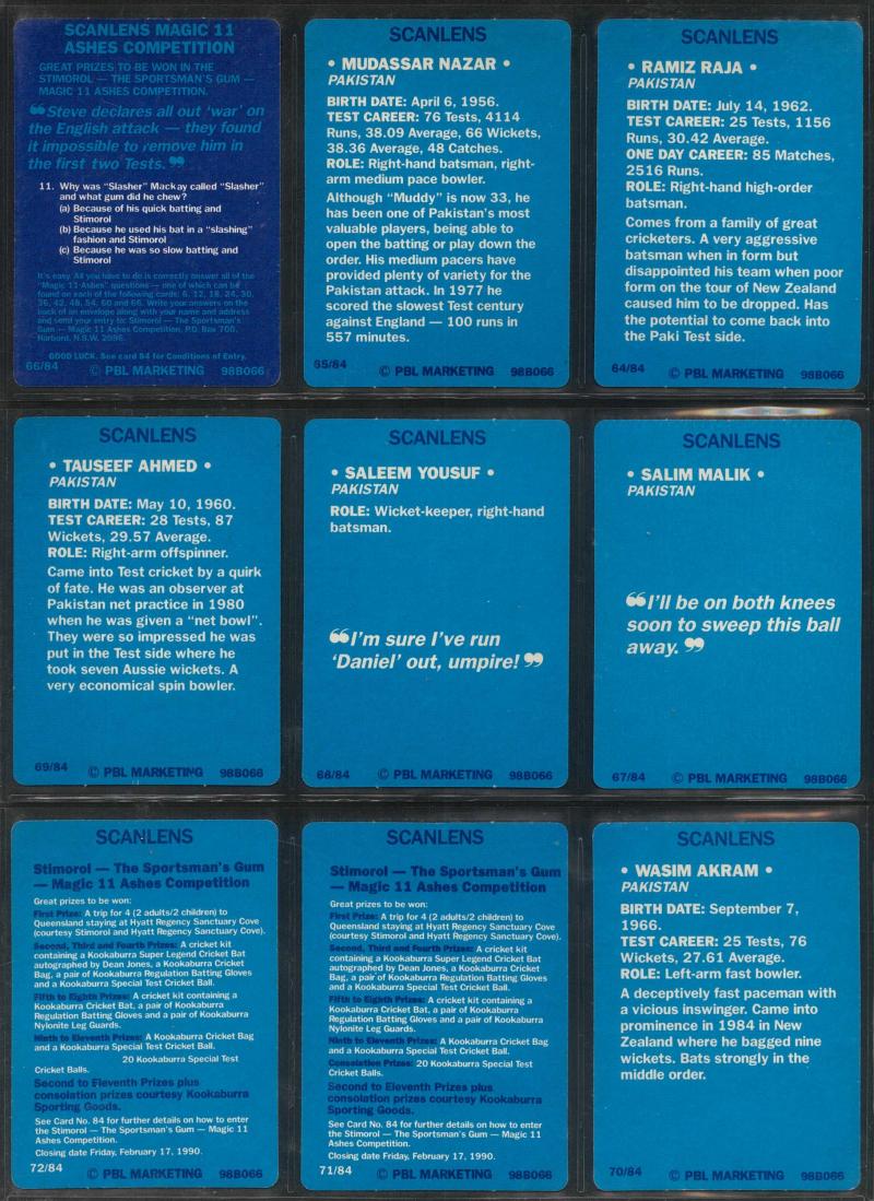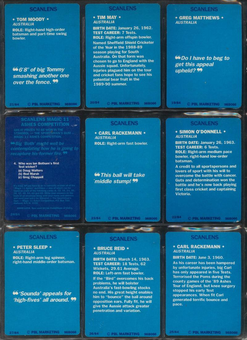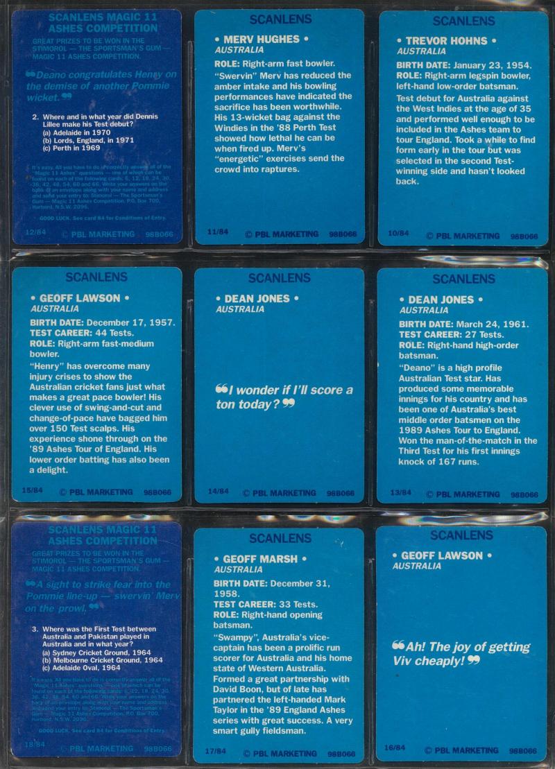 1989-90 Scanlens/Stimorol 'Cricketers', complete set [84] with 45 cards signed including Allan Border, Dean Jones, Richard Hadlee,