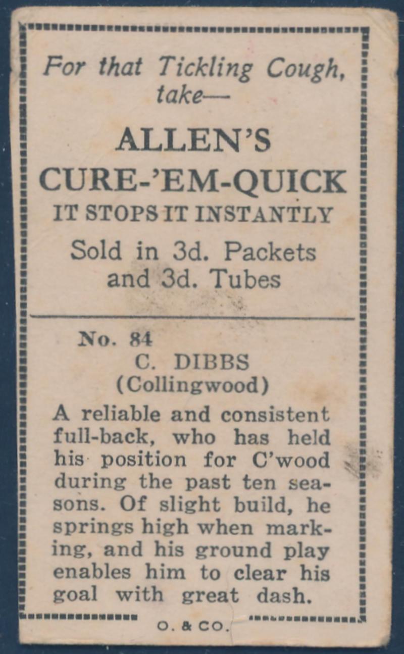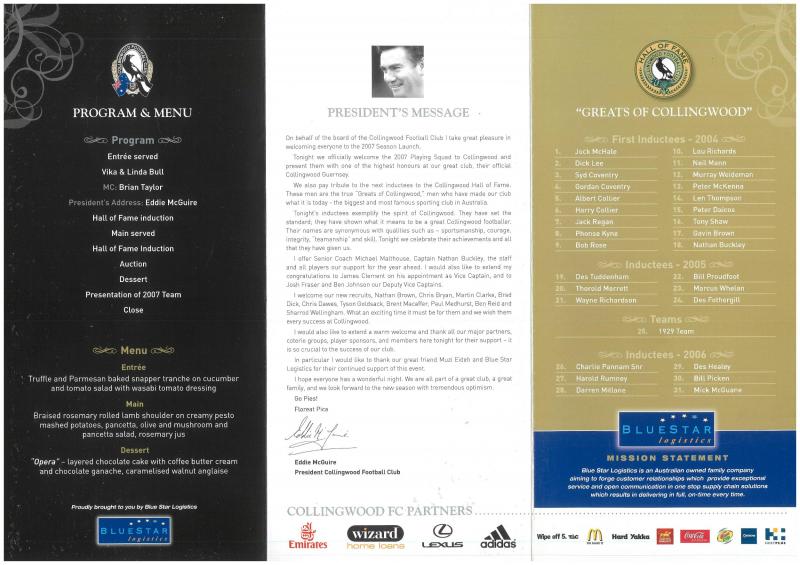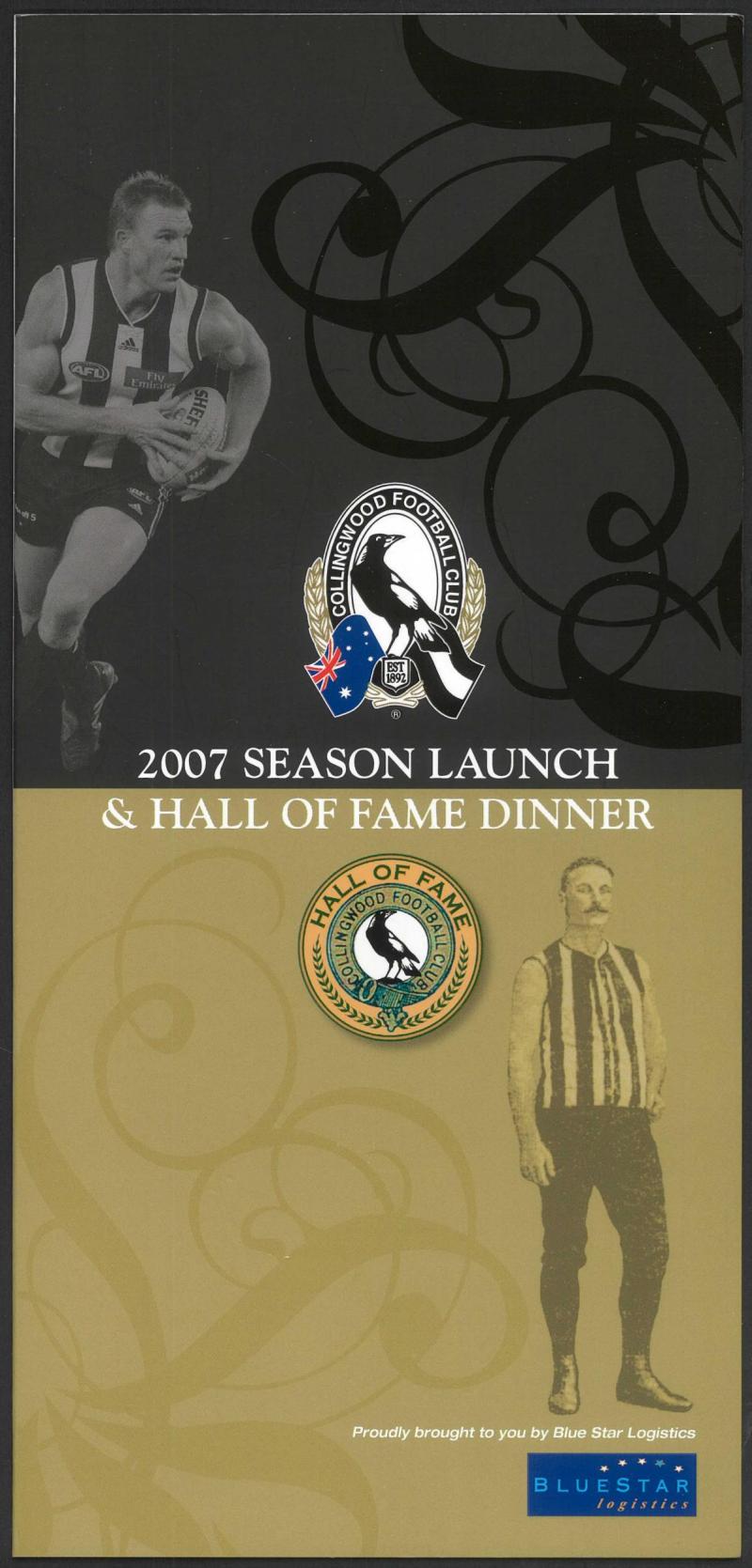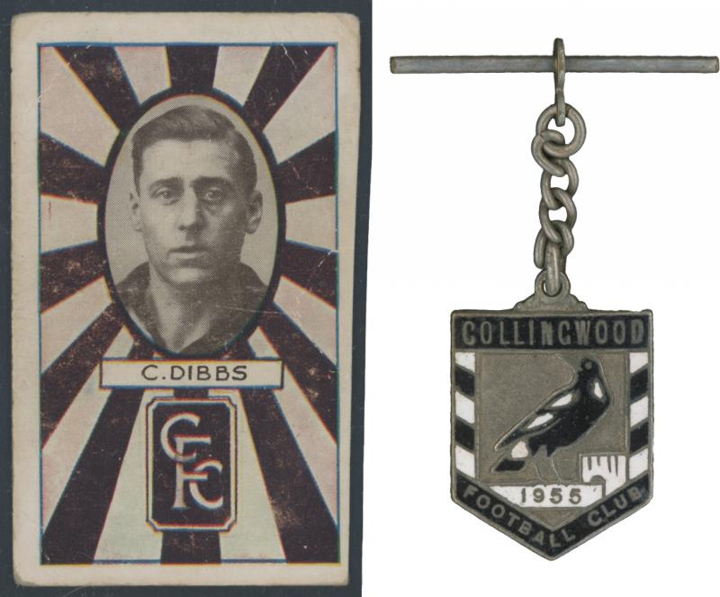 reverse, plus football card & 2007 Hall of Fame dinner menu. Ex Charlie Dibbs, Collingwood Hall-of-Famer who played at full back in Collingwood's four consecutive premierships.