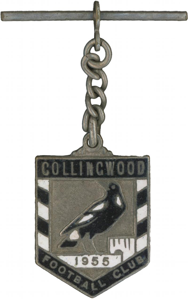COLLINGWOOD: 'Collingwood Football Club/1955' membership badge (the first year these were issued), with number "21" engraved on the