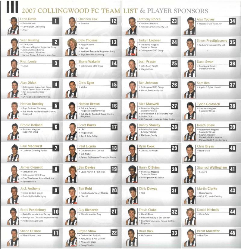 Greg Williams, Matthew Kreuzer, Mark Murphy (4), Bryce Gibbs, Tom Harley & Mark Thompson (9), Jimmy Bartel (7), Paul Chapman; plus few unsigned (7), mainly Fine.