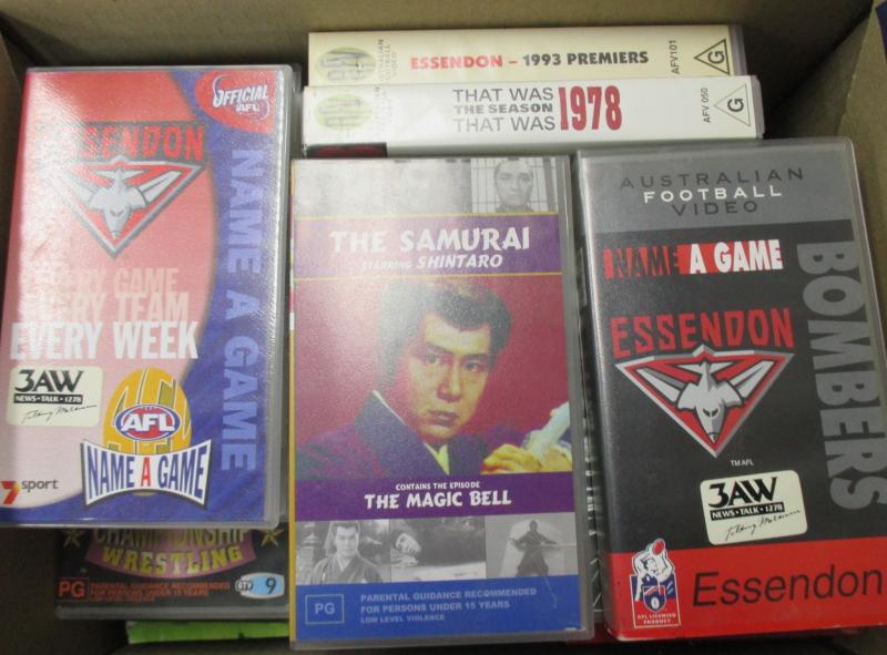 'Football Budget' (22); WAFL 'Football Budget' (33); International (1); other programmes (17); West Coast Year Books (6); magazines (52) including 'Footy Fan' (10); books (2); videos (35) plus Wrestling (2) & Shintaro (3), mainly Fair/Fine.