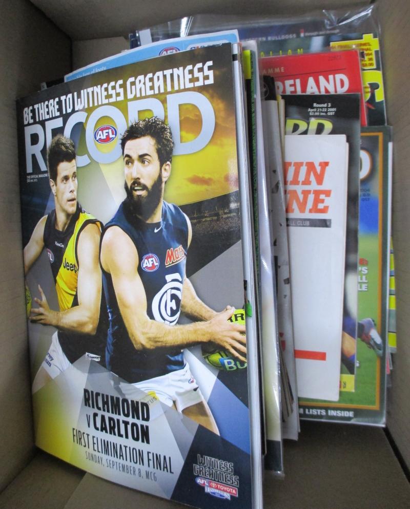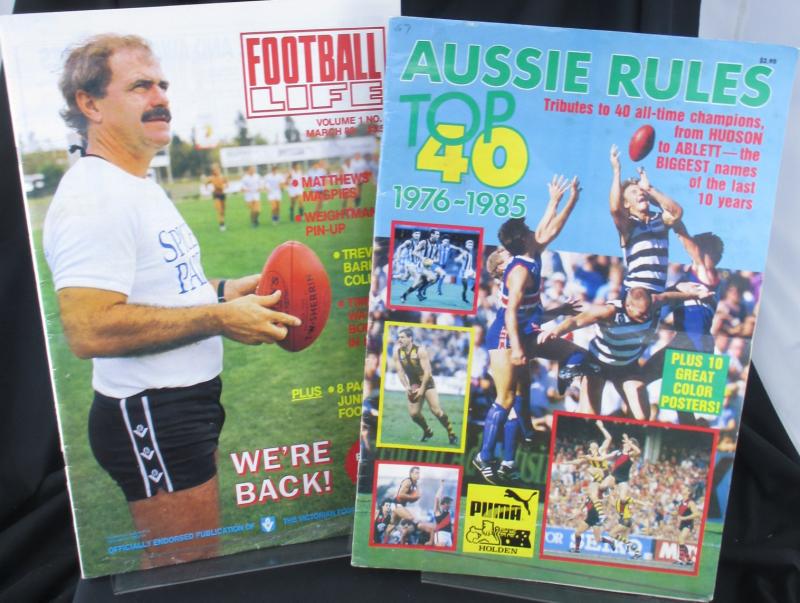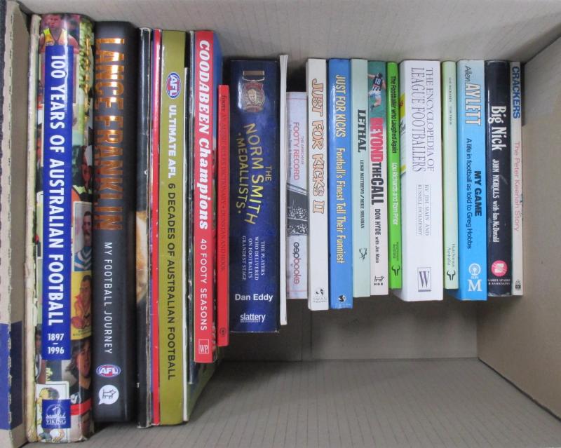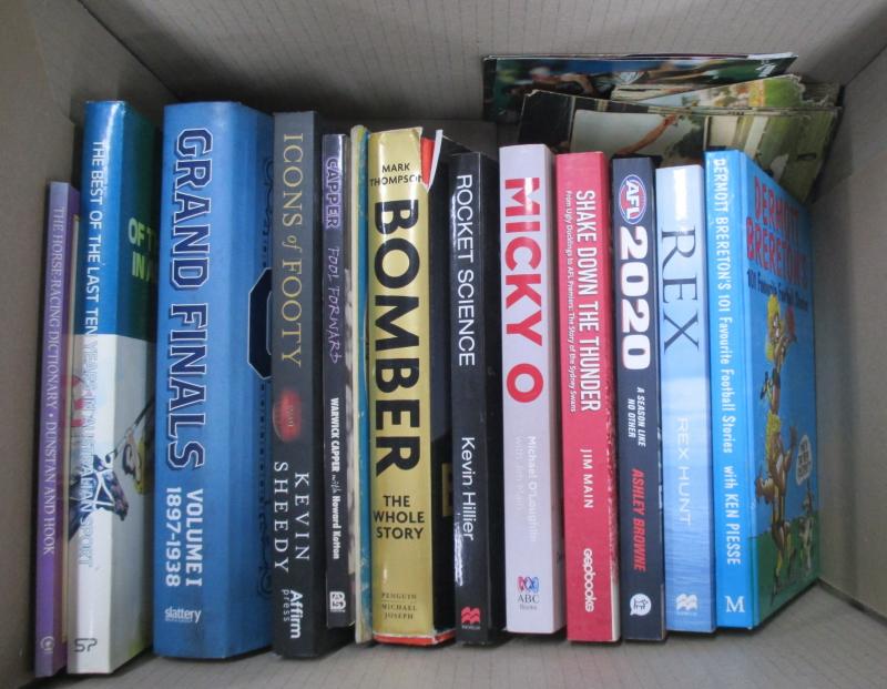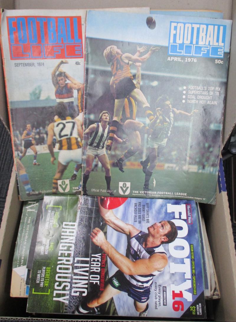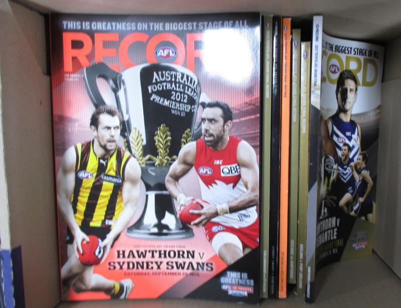 (6); VFA (59); magazines (49); few newspaper supplements; books (37) including 'In The Blood - Celebrating the Red & White 1874-2009' by Jim Main (signed), '100 Years of Australian Football', 'Lance Franklin - My Football Journey'; also 1965-66 Mobil