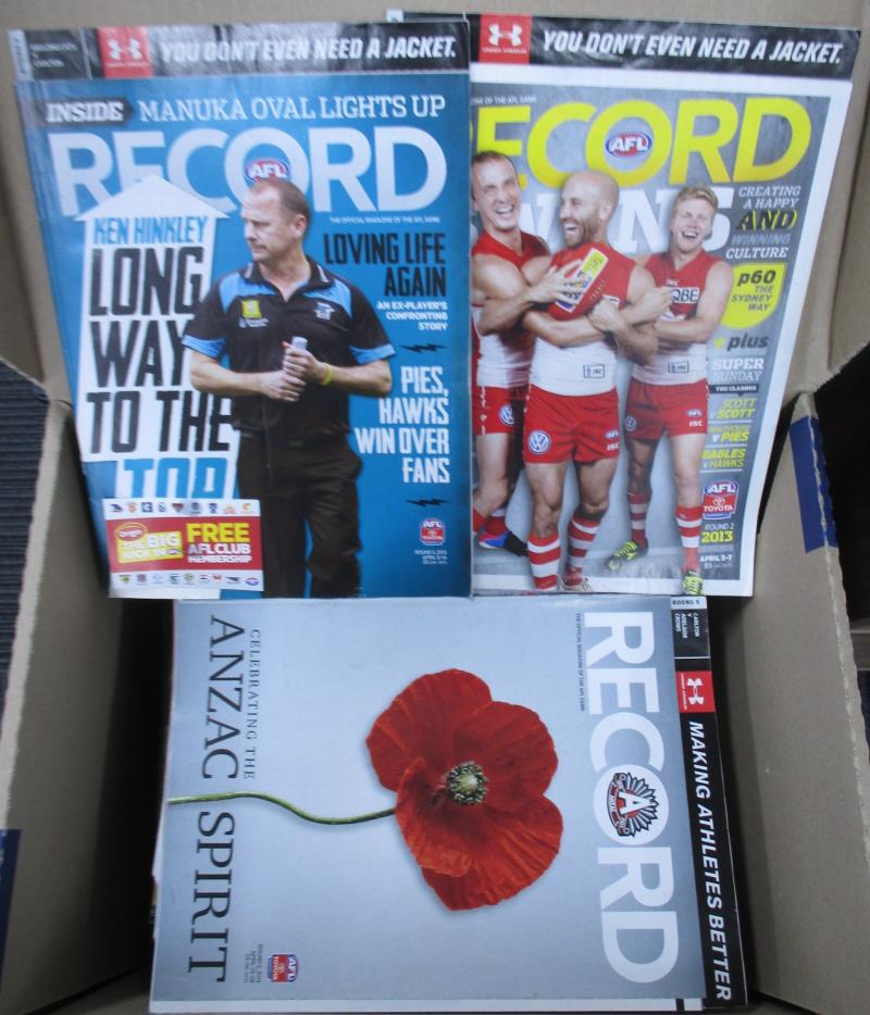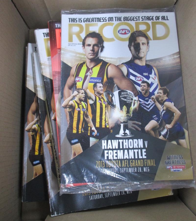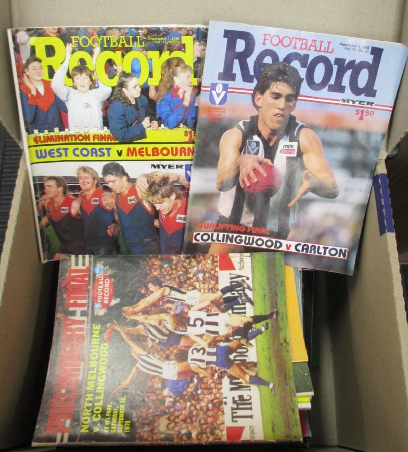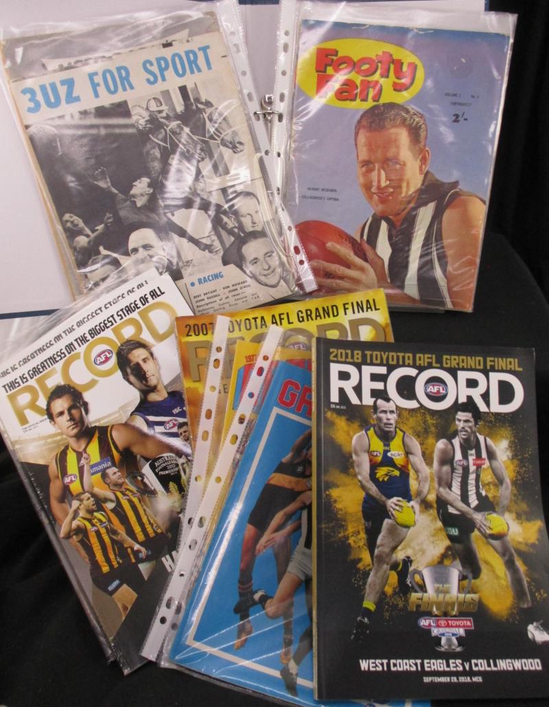 Records & magazines 1977-2018 range including 'Football records' Home & Away (97), Finals (4), Grand Finals (15) & others (2); SA