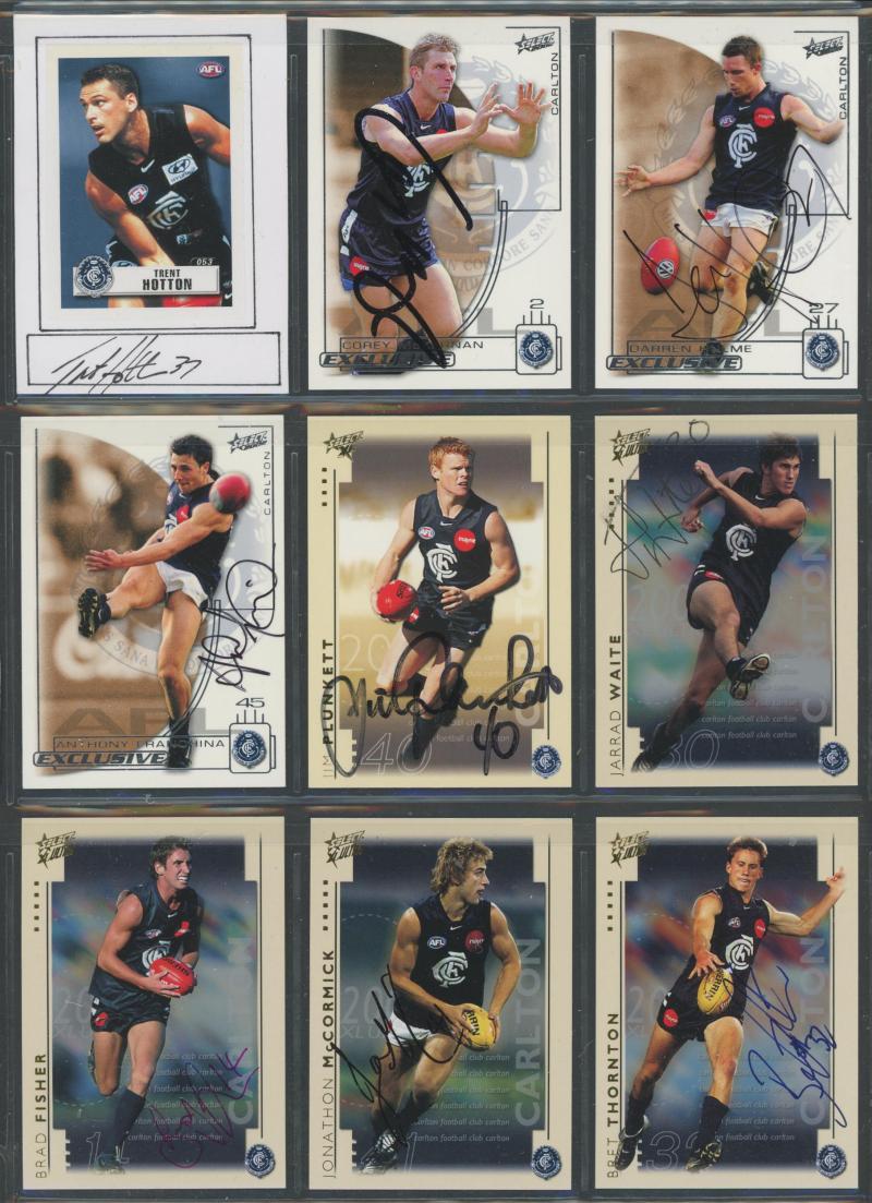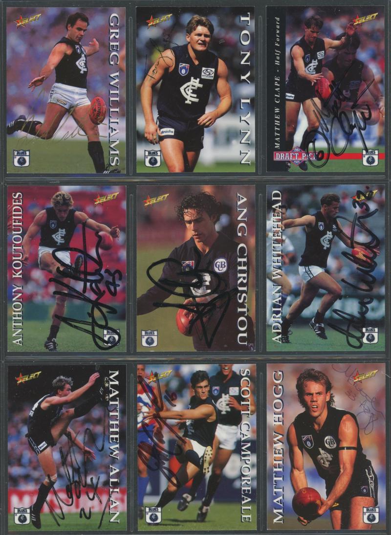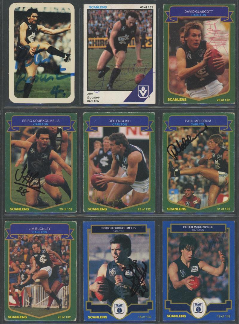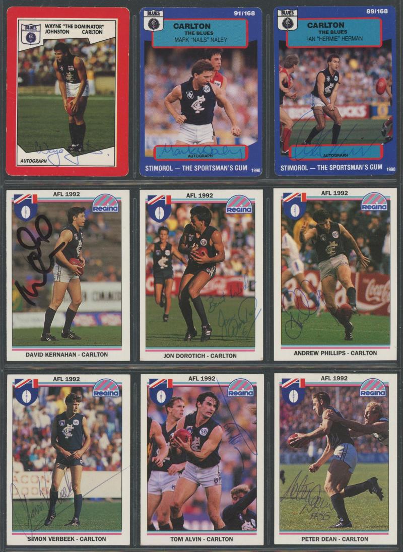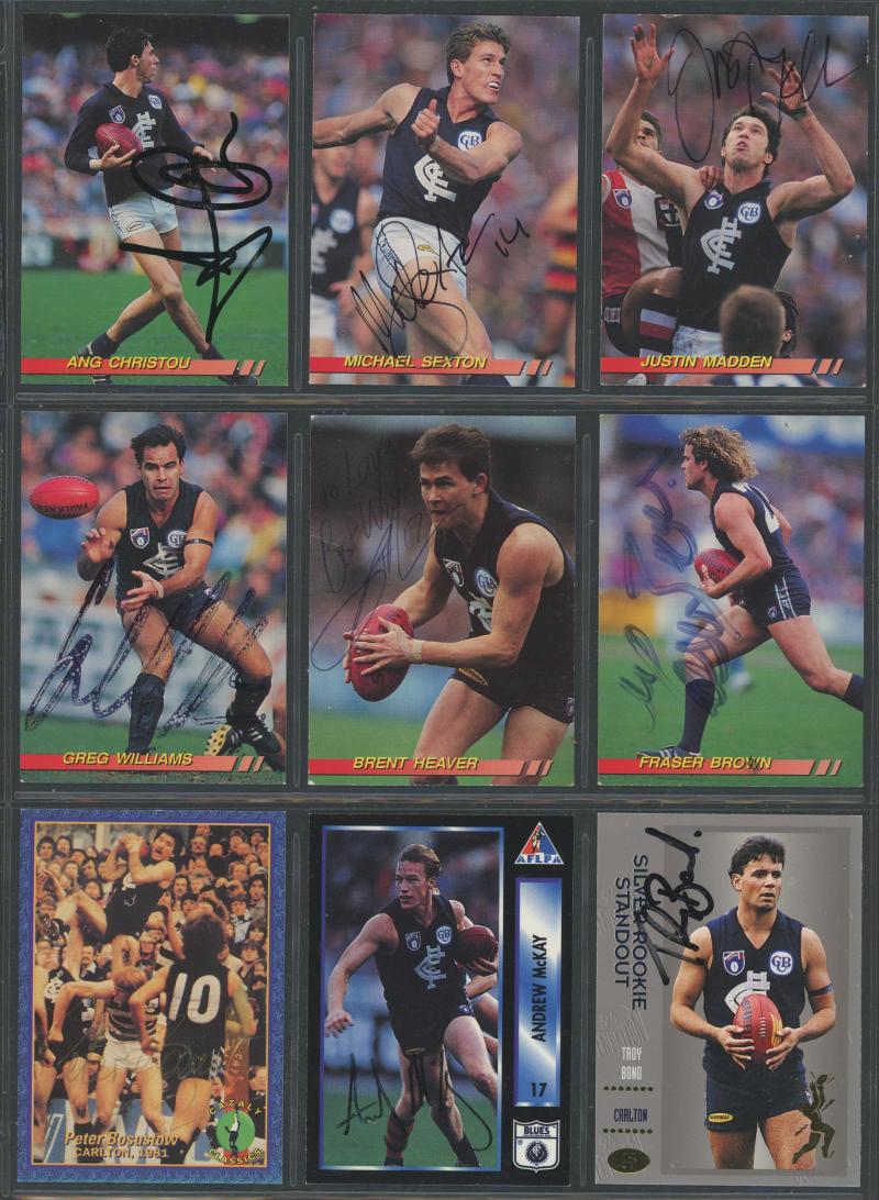 CARLTON: Collection of signed football cards (90); names include Jim Buckley, David Rhys-Jones, Peter Motley, Wayne Johnston,