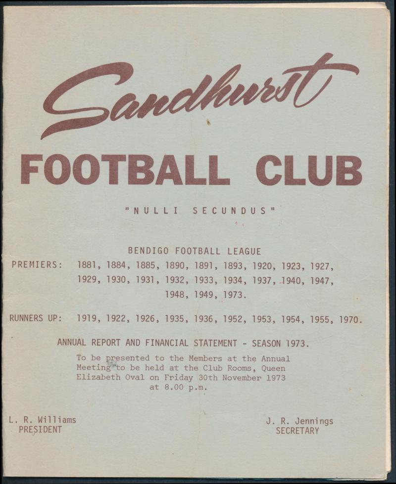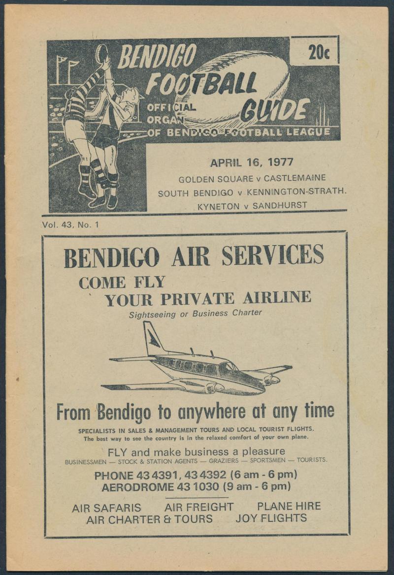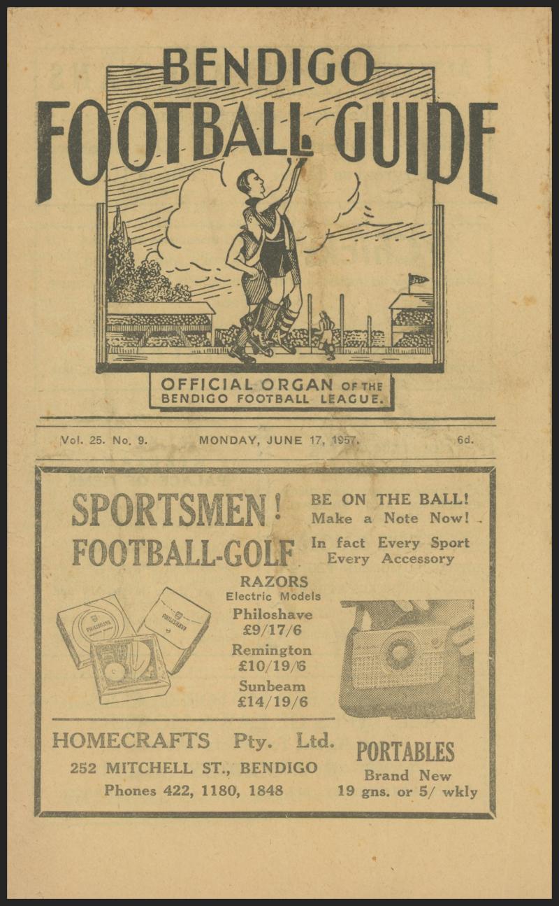 Records 1957-2013 'Bendigo Football Guide/Bendigo Footballer' (272) plus reprints (14); also 'Golden City Footballer' (8), 'El-Vee'