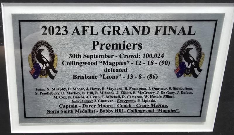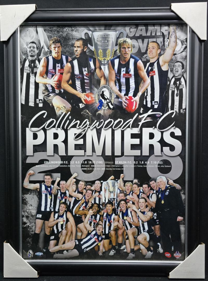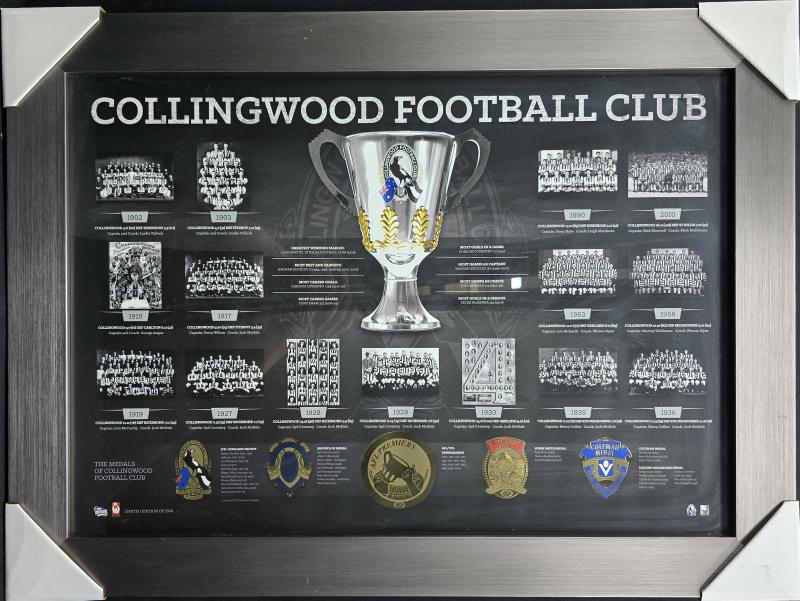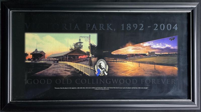 COLLINGWOOD: Framed displays comprising 'Victoria Park 1892-2004', 'The Medals of Collingwood', 'Collingwood Premiers 2010', 2023