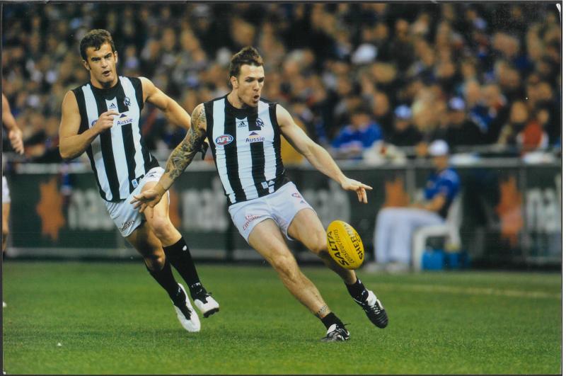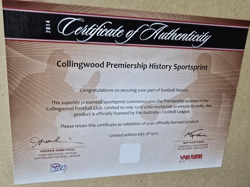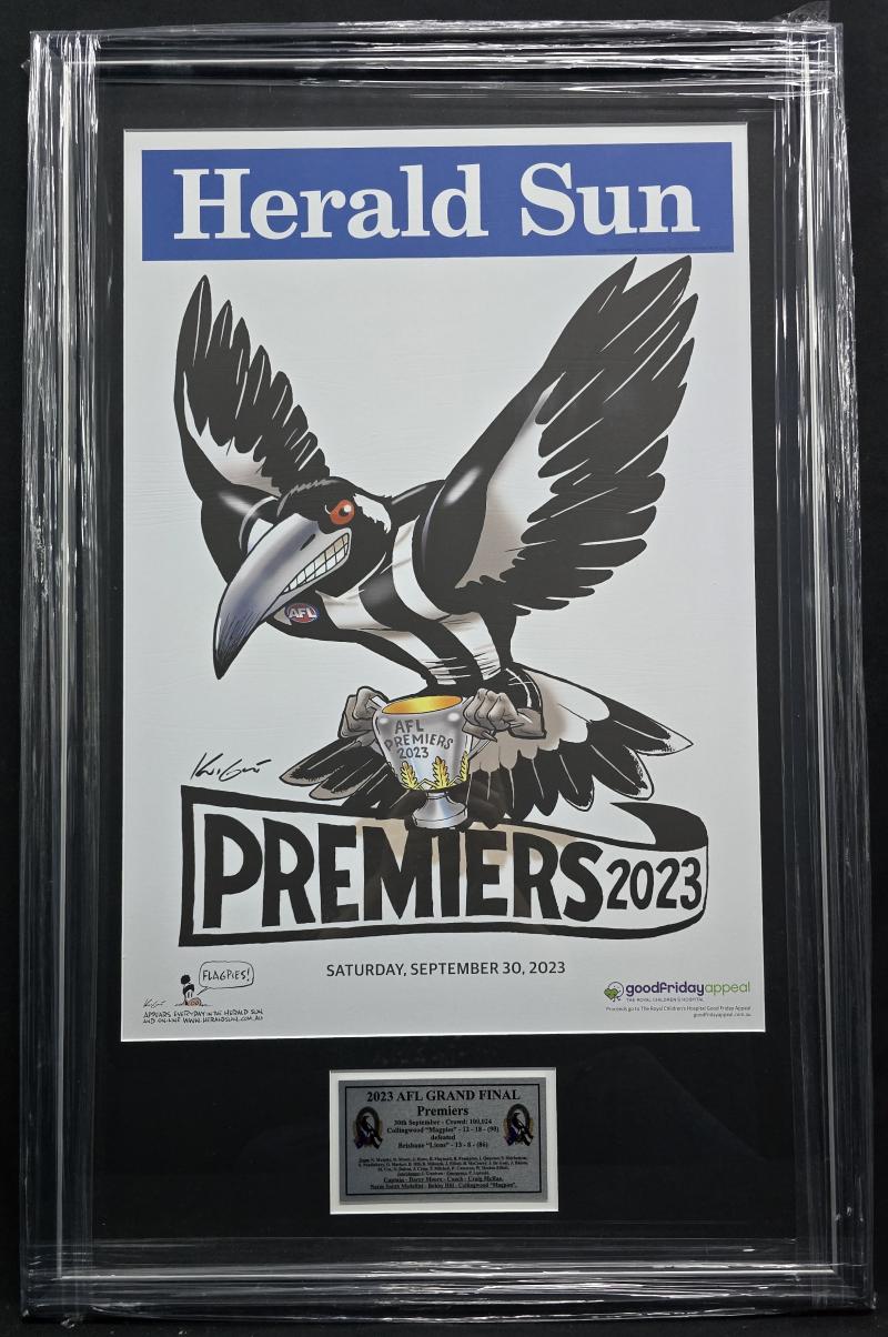 overall 91x114cm. With CoA. [A beloved player, Millane tragically died in a car accident at the age of 26, only a year after starring in the Magpies drought-breaking premiership]. (Image1) (Image2)