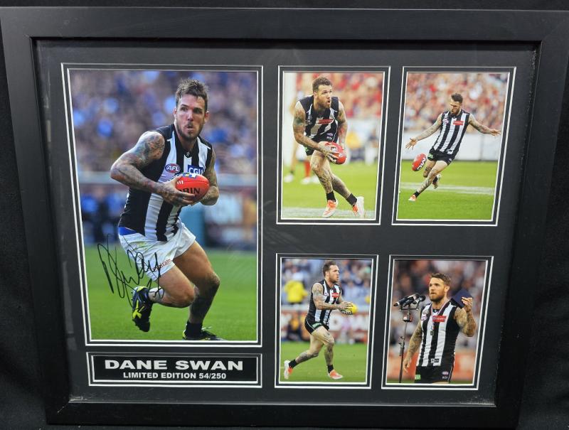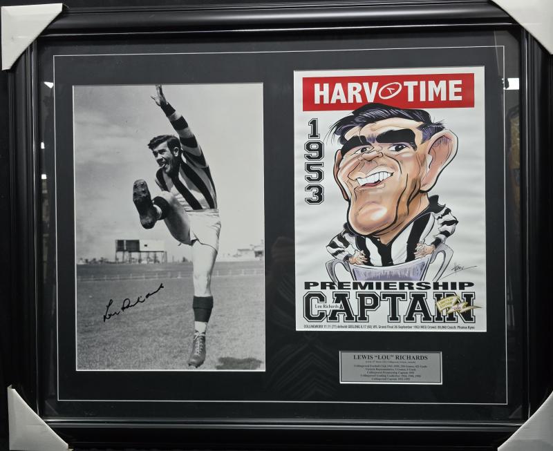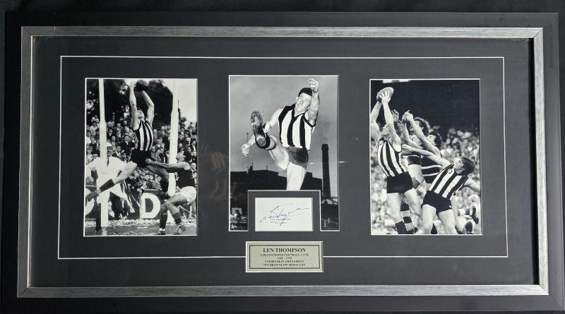 COLLINGWOOD: Signed displays of Lou Richards, Len Thompson & Dane Swan, all framed, various sizes.