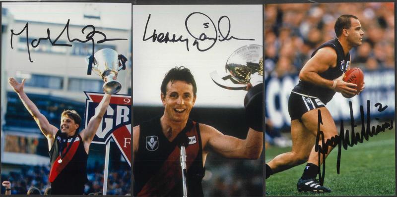 Signed photographs comprising Nick Maxwell (22), Nathan Buckley (5), Kevin Sheedy, Terry Daniher (2), James Hird, Kevin Murray (3),