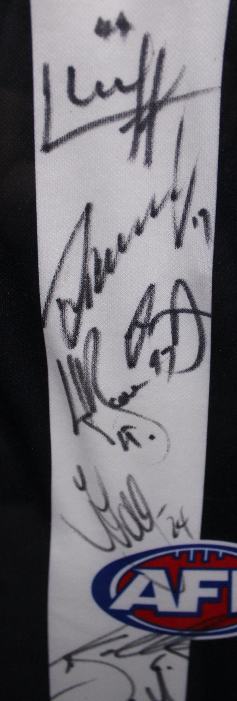 COLLINGWOOD: Collingwood jumper signed by 2010 Premiership team, with 30 signatures including Nick Maxwell, Scott Pendlebury, Dane