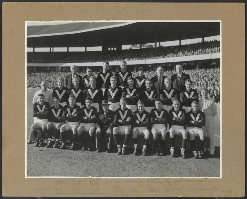 VICTORIA: 1954 (circa) Team photograph including Jack Collins, Neil Doolan, Norm Sharp, Neil Mann, Bill Gunn, Roy Wright & Noel