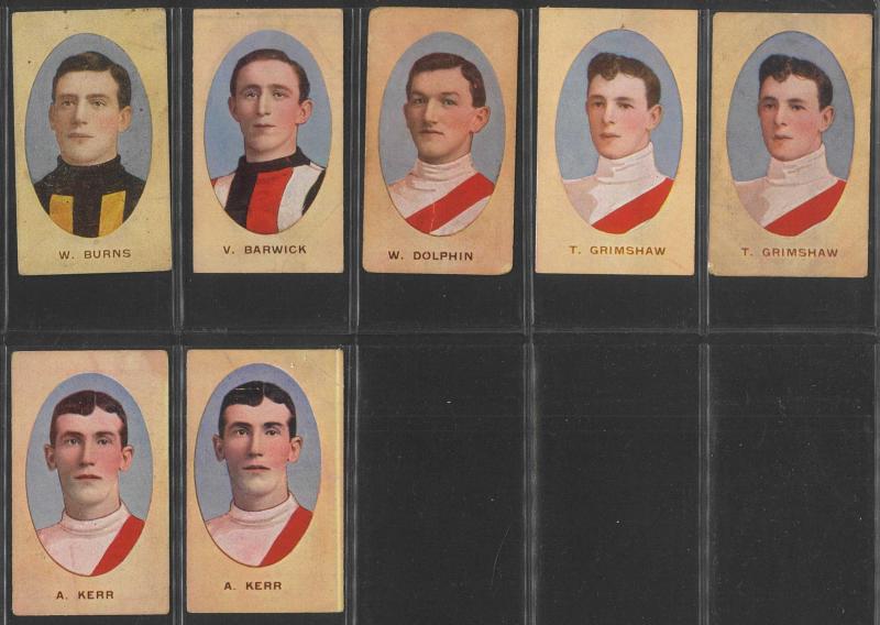 1905-06 (1), 1906-07 (4), 1907-08 (1), 1908-09 (7) & 1912-13 (4); Kornies; few cricket, mainly Poor/Fine.