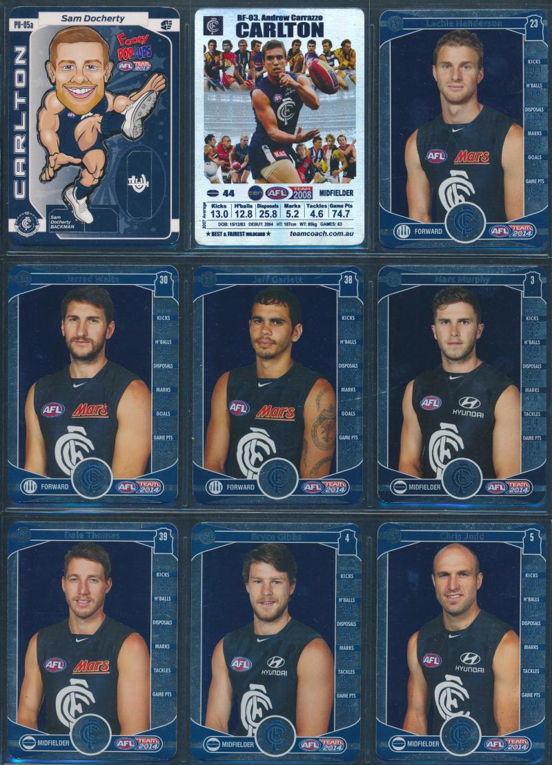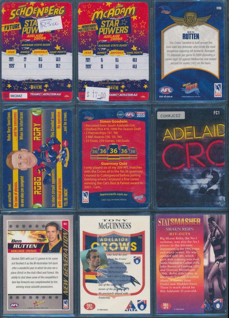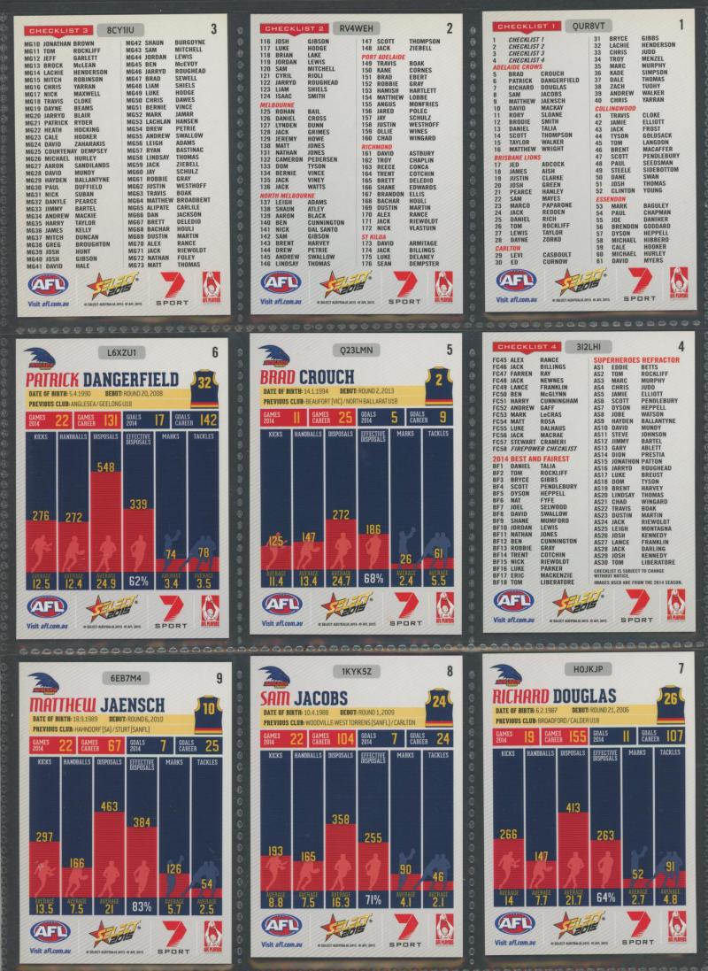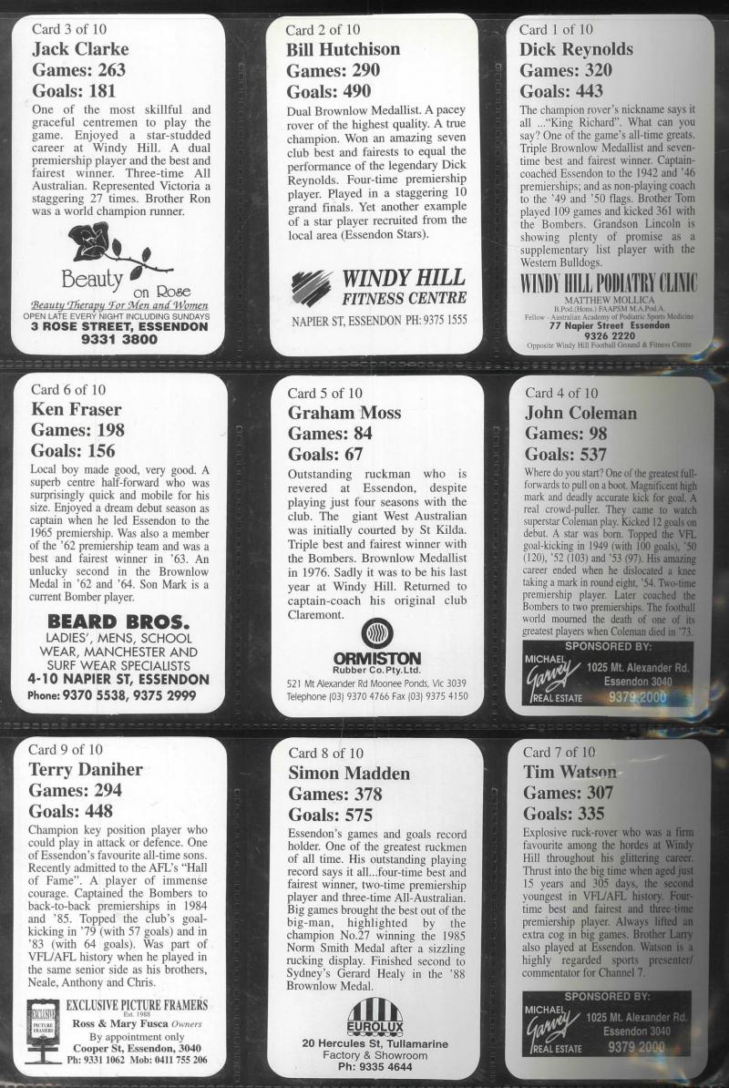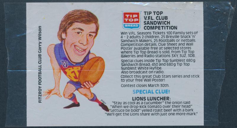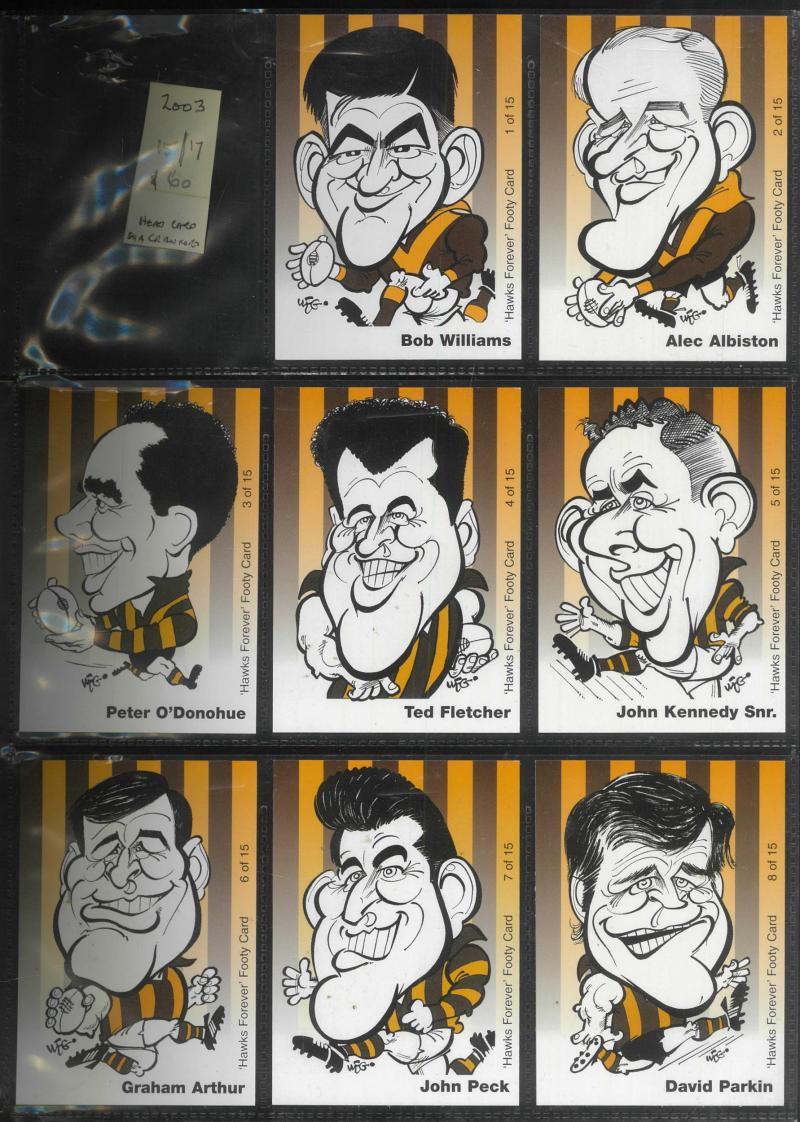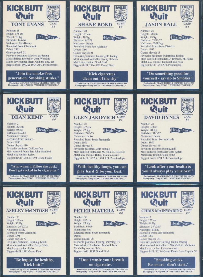 Herald-Sun 'Cartoon Stickers' [12]; 1980 Esso 'VFL Club Emblem Stickers' [12]; 1985 TAB 'I Back Stickers' [12]; 1990 Fox FM 'Fox Stickers' [14]; 1990 Quit 'AFL Captains Stickers' [15]; 1992-94 Quit 'VFA Players Stickers' [12]; 2011 Herald-Sun 'AFL