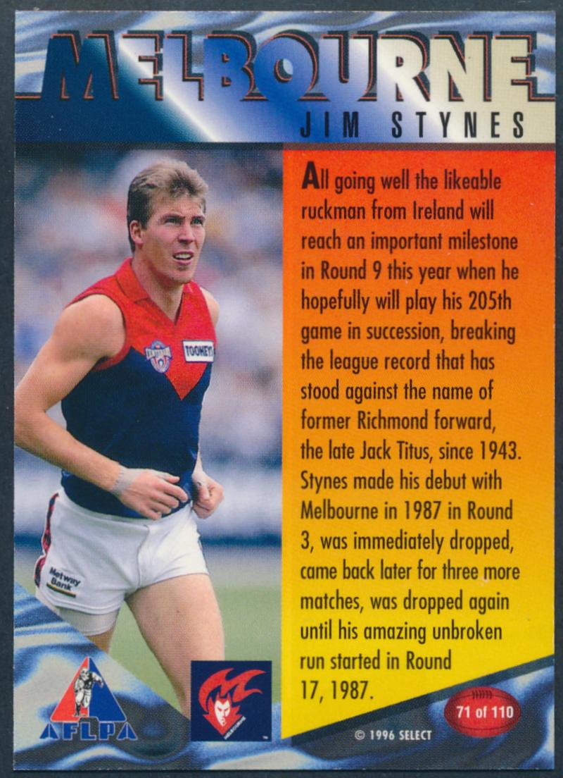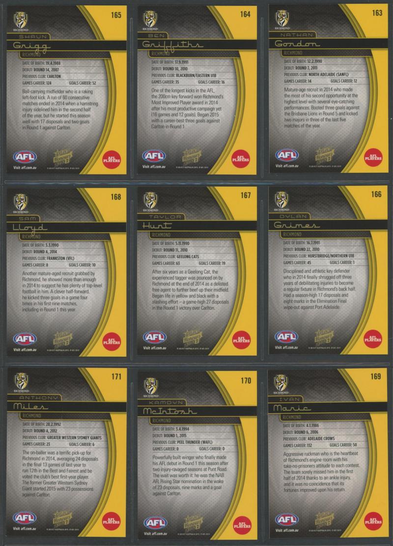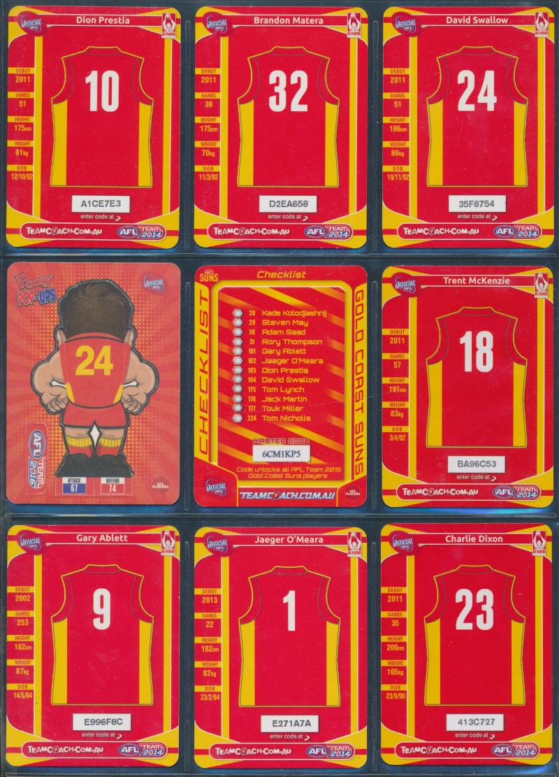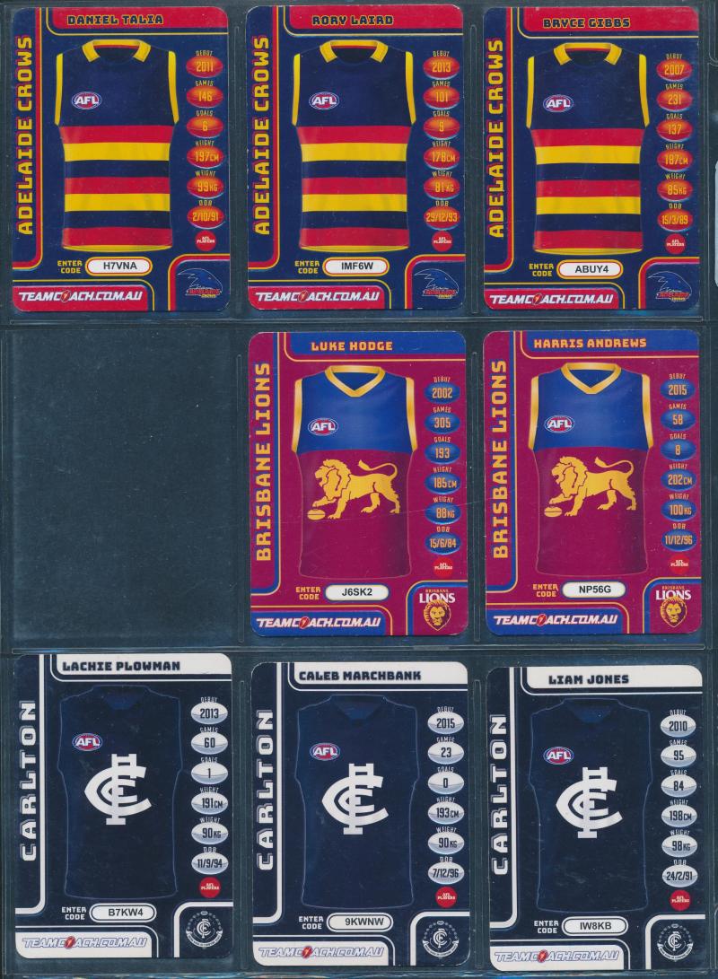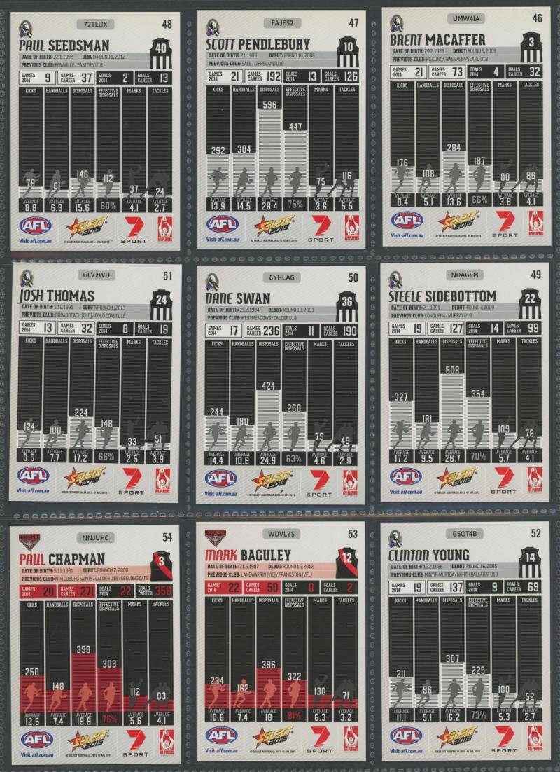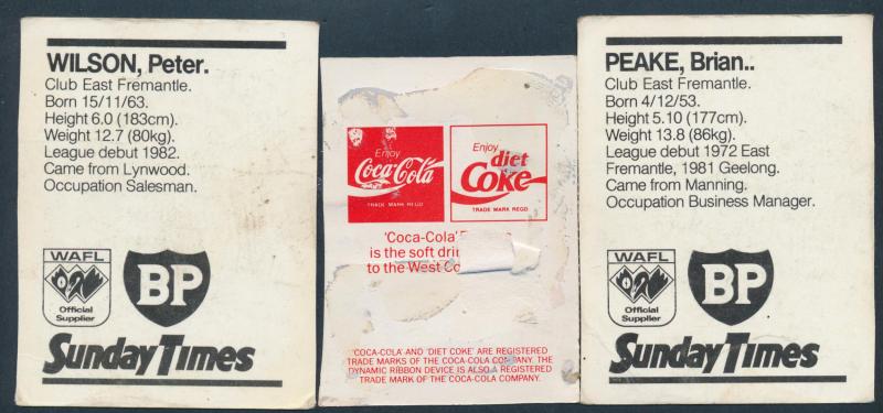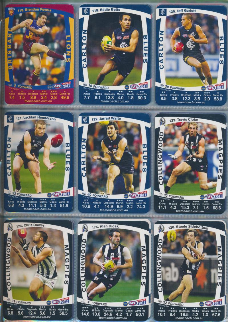 Herald-Sun 'Cartoon Stickers' [12]; 1980 Esso 'VFL Club Emblem Stickers' [12]; 1985 TAB 'I Back Stickers' [12]; 1990 Fox FM 'Fox Stickers' [14]; 1990 Quit 'AFL Captains Stickers' [15]; 1992-94 Quit 'VFA Players Stickers' [12]; 2011 Herald-Sun 'AFL
